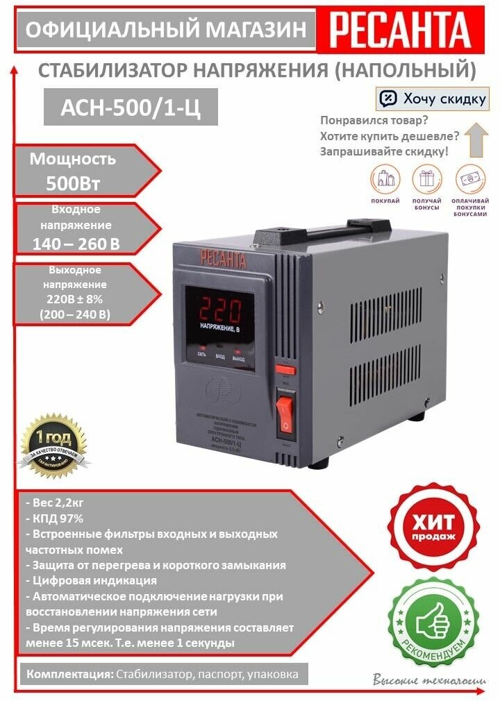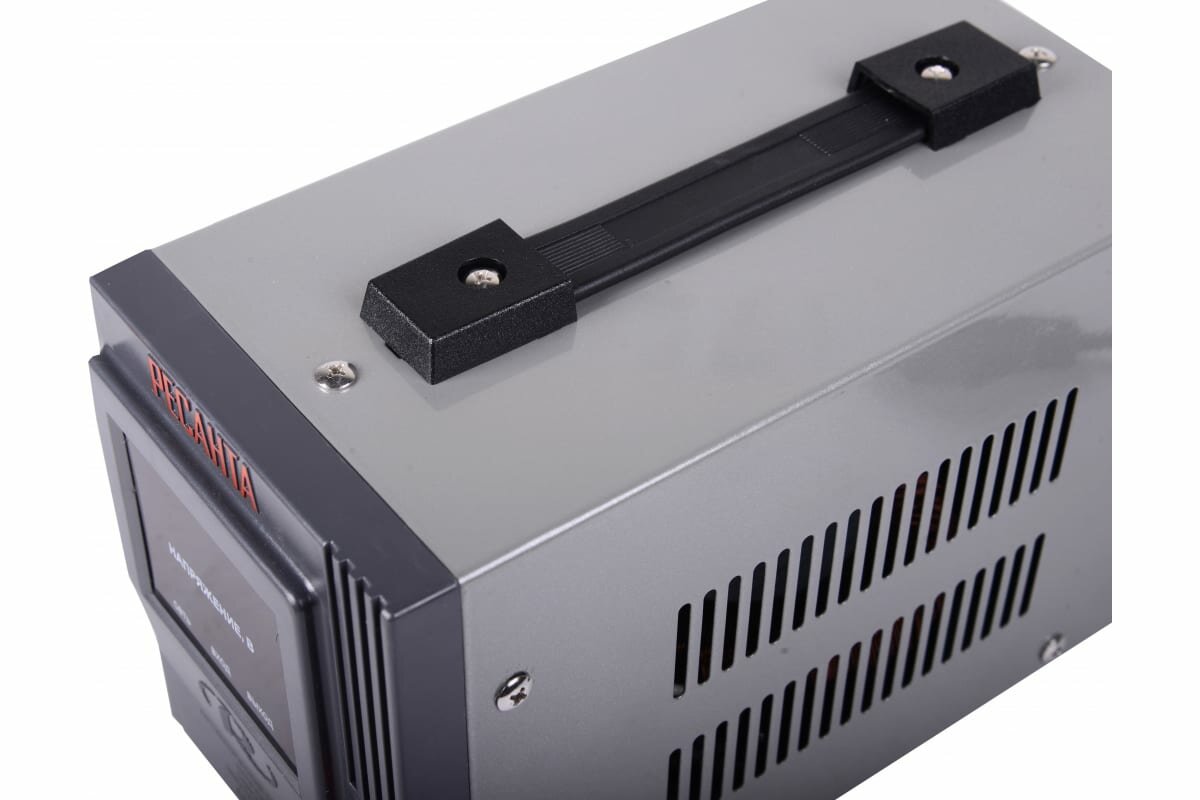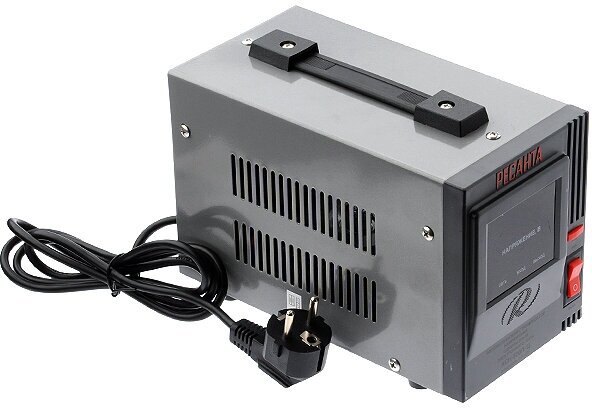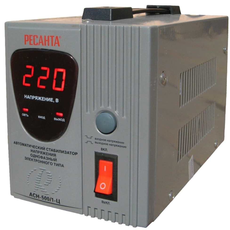 Стабилизатор данной модели моментально реагирует на скачки напряжения, поэтому предупреждает выход из строя эксплуатируемой техники. Предназначен для подключения к однофазной сети. Стабилизатор напряжения помещен в прочный корпус, который обеспечивает защиту внутренним компонентам от механических повреждений. Имеет микропроцессорное управление, а также комплектуется фильтром сетевых помех, цифровым индикатором. Стабилизатор Ресанта АСН-500/1-Ц имеет эргономичный дизайн и компактные размеры, вес составляет всего 2,1 кг. Благодаря отсутствию искажения синусоиды, обеспечивает стабильное напряжение с максимальной силой тока 2,6 А.