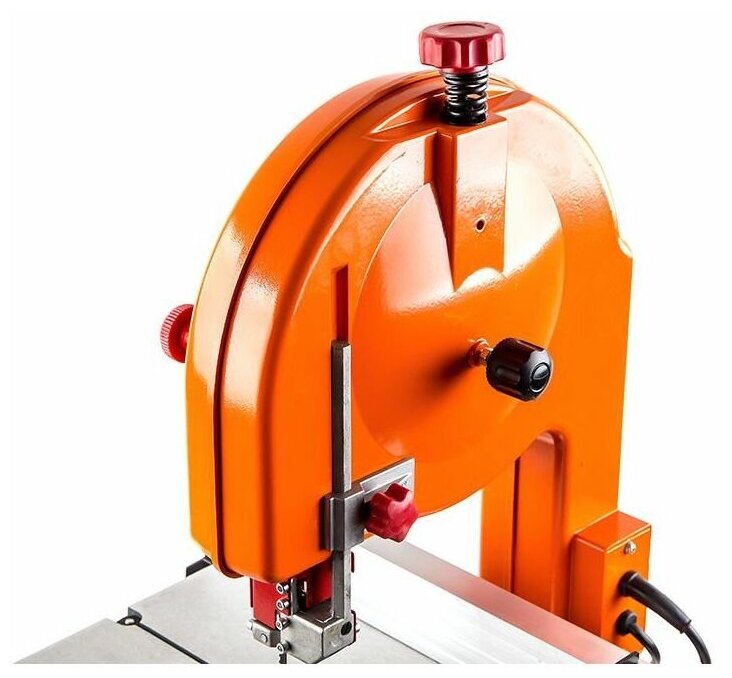 Станок относится к типу легких вертикальных ленточнопильных станков и предназначен для прямолинейного и радиусного пиления заготовок из древесины и производных из нее материалов. Станок комплектуется надежным асинхронным двигателем. Механизм перекоса натяжного шкива для стабильной работы пильной ленты и ее устойчивого положения на шкивах приводного и натяжного узлов. Регулируемые продольный и поперечный упоры. Литой рабочий стол с возможностью регулировки в горизонтальной плоскости до 45°. Патрубок для подключения пылесоса.