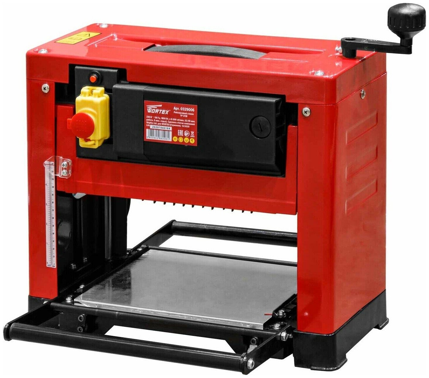 Станок рейсмусовый деревообрабатывающий WORTEX TP 3118 (0329006) предназначен для чистового строгания деревянных досок под заданную толщину. Рейсмус пропускает доску через себя, строгая верхнюю часть широким валом с лезвиями. На выходе получается доска нужной толщины с ровной гладкой поверхностью. Литая станина обеспечивает надежную установку на стол и высокую точность выполнения операции. Минимальная длина заготовки: 130 мм. Диапазон высоты строгания: 6-130 мм. Скорость подачи заготовки 6 м/мин.