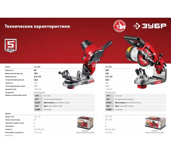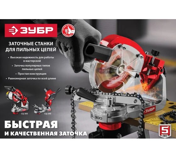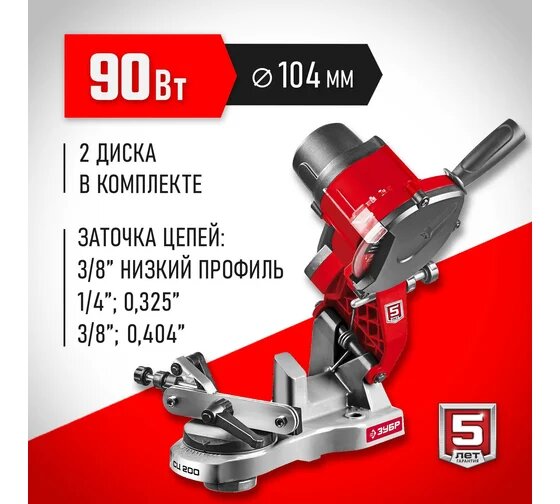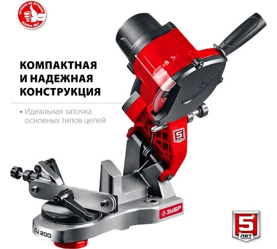 Заточной станок для пильных цепей ЗУБР 90 Вт СЦ-200 отличается компактными габаритами и легким весом.