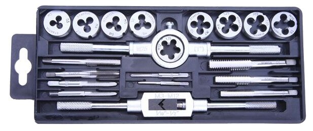 плашки: 9 шт. M3х0,5 M4х0,7 M5х0,8 M6х1,0 M7х1,0 M8х1,25 M9х1,25 M10х1,5 M12х1,75