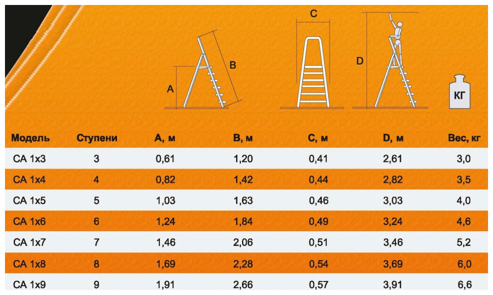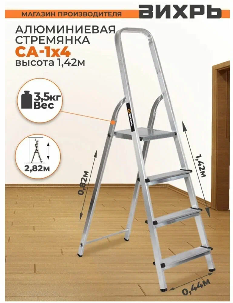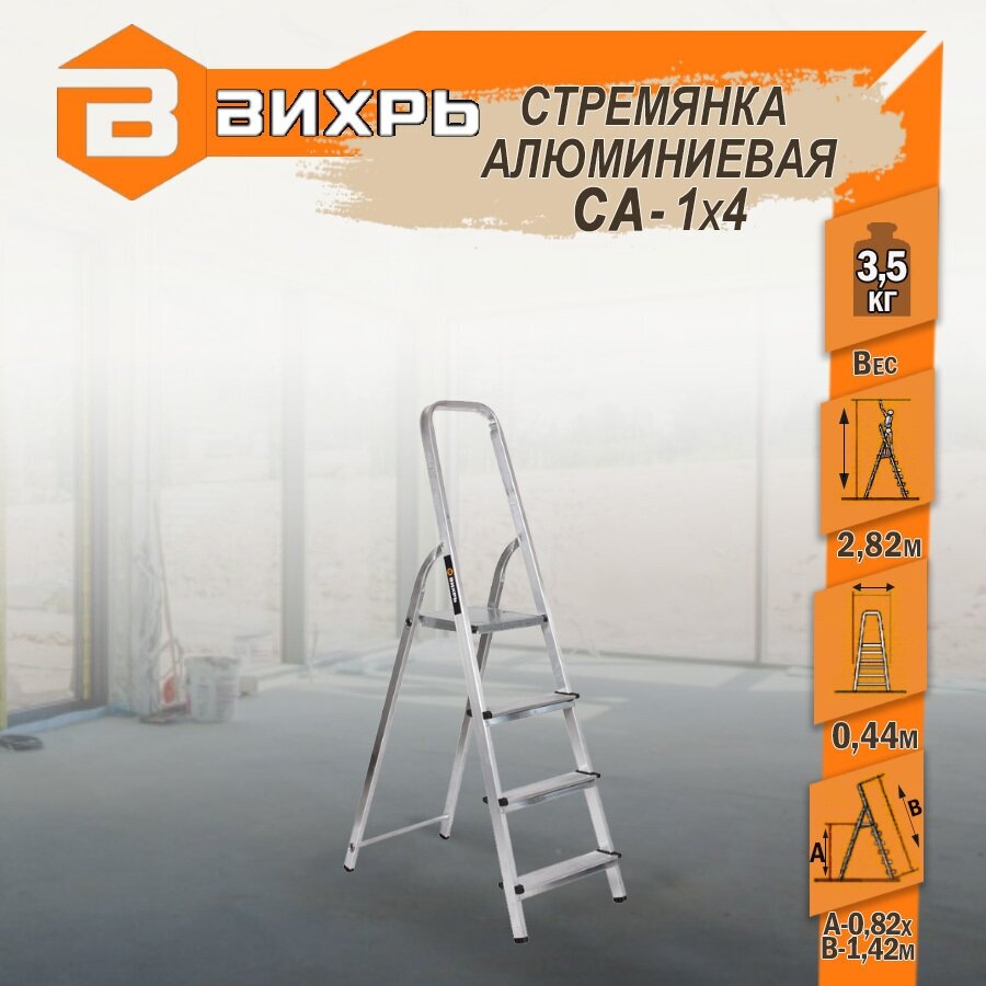 Стремянка алюминиевая ВИХРЬ СА 1*4 (73/5/1/2)
