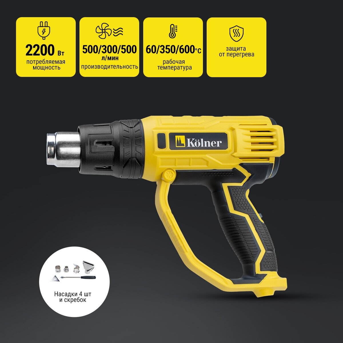 Широкая сфера применения: служит для удаления лакокрасочных покрытий, отогревания замерзших металлических труб, отделение кафеля, мастик и шпатлевок и т. п. защита от перегрева: автоматическое отключение инструмента при перегревании продлевает срок службы прибора. 3 режима работы: для работы с различными материалами. Расширенная комплектация: поставляется с набором насадок. Гарантия: гарантийный срок эксплуатации на изделие составляет 12 мес.