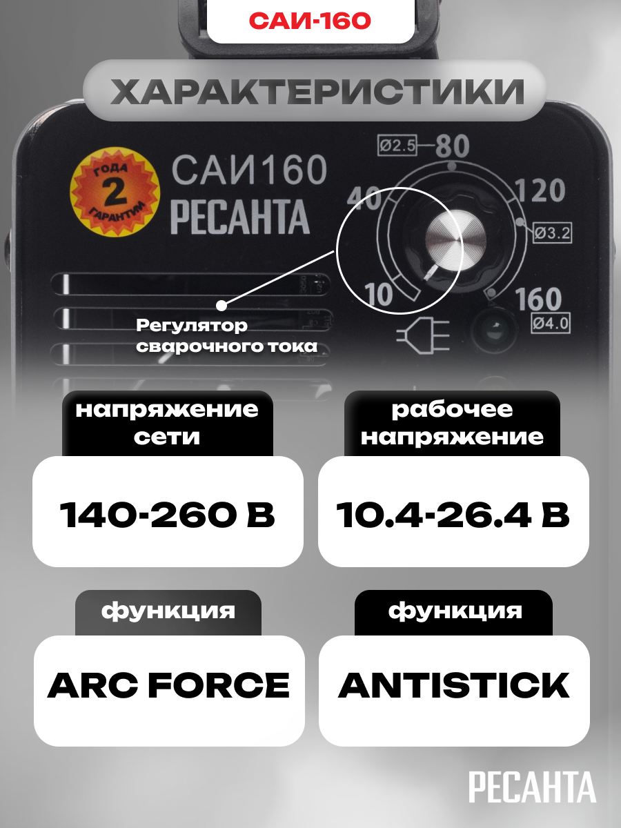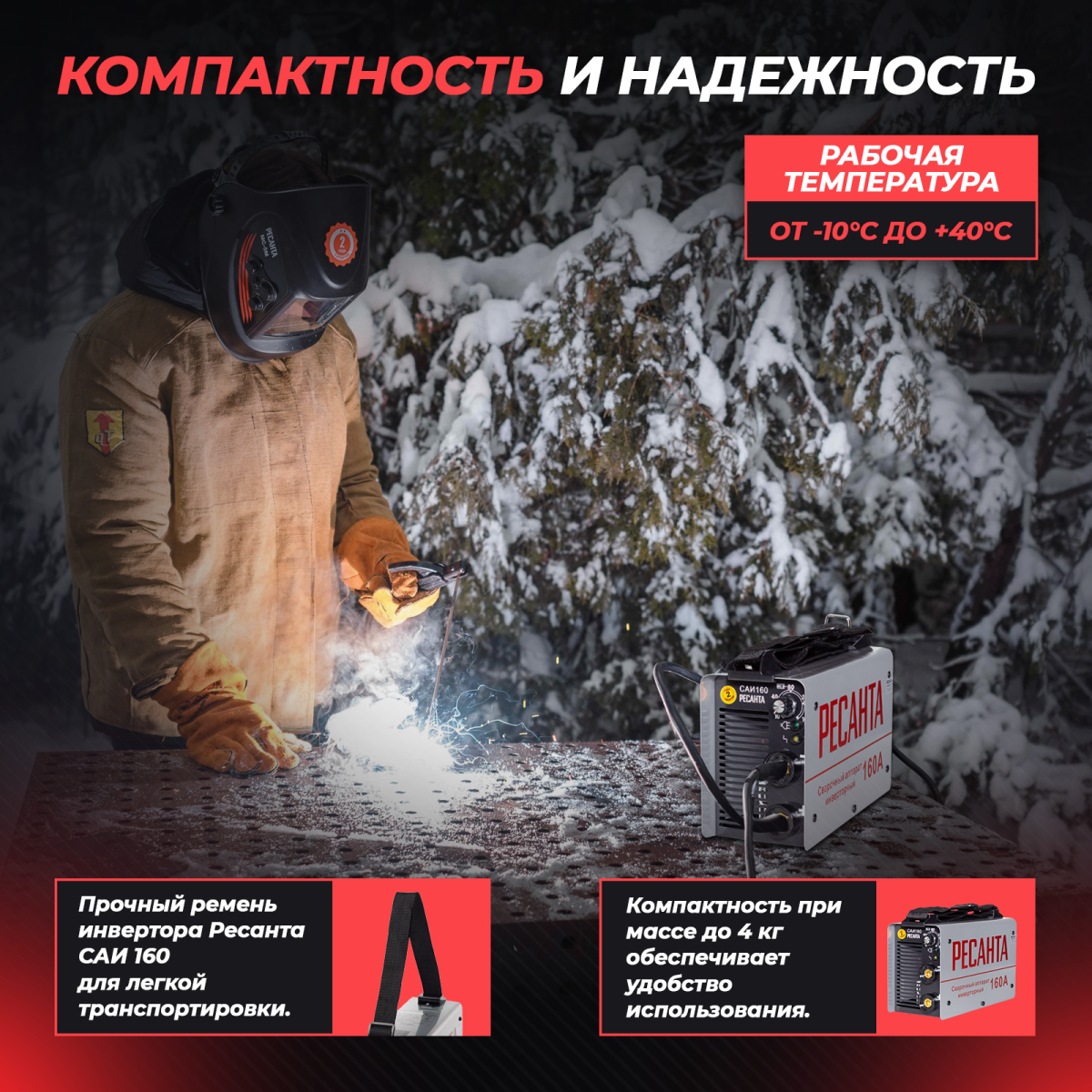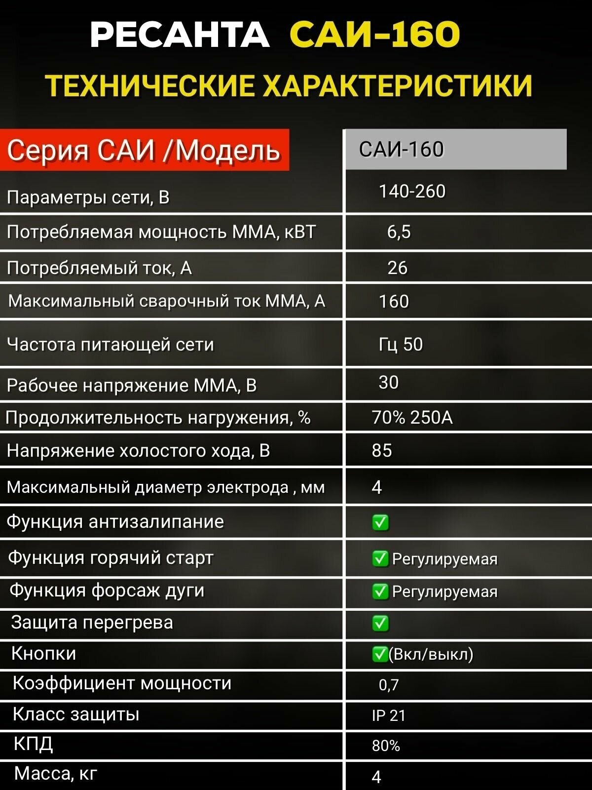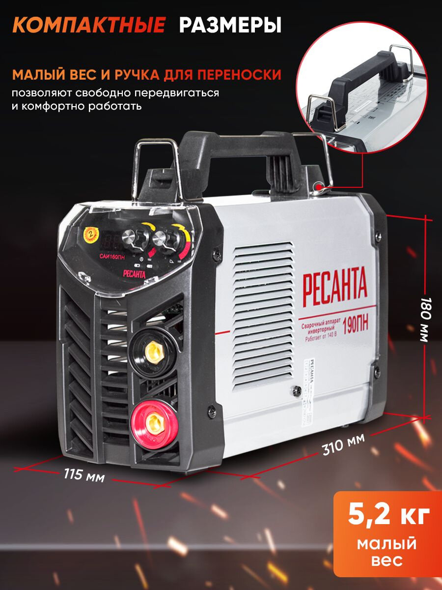 Приведите свои проекты к новому уровню с нашим инверторным сварочным аппаратом Ресанта САИ 160 – надежным и мощным инструментом для профессиональных и любительских работ. Особенности нашего сварочного инвертора: Инверторная сварка: Этот аппарат основан на передовой инверторной технологии, которая обеспечивает высокую стабильность сварочных параметров. Это означает более точные и прочные сварочные соединения. Универсальность: Независимо от того, нужна вам сварка тонких металлических листов или толстых конструкций, наш сварочный инвертор справится с любой задачей. Простота использования: Интуитивный интерфейс делает работу с аппаратом максимально удобной. Вы сможете быстро настроить необходимые параметры сварки и приступить к работе. Надежность и долговечность: Наши сварочные инверторы созданы с использованием высококачественных материалов и тщательно протестированы, чтобы обеспечить долгий срок службы. Мобильность: С малым весом и компактным дизайном нашего сварочного инвертора, вы легко сможете брать его с собой куда угодно, где потребуется сварка. Поднимите планку качества в ваших сварочных проектах. Наш инверторный сварочный аппарат станет вашим надежным спутником в мире сварки. Покупайте сегодня и достигайте профессиональных результатов с легкостью!