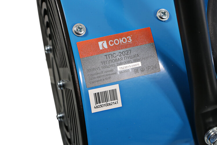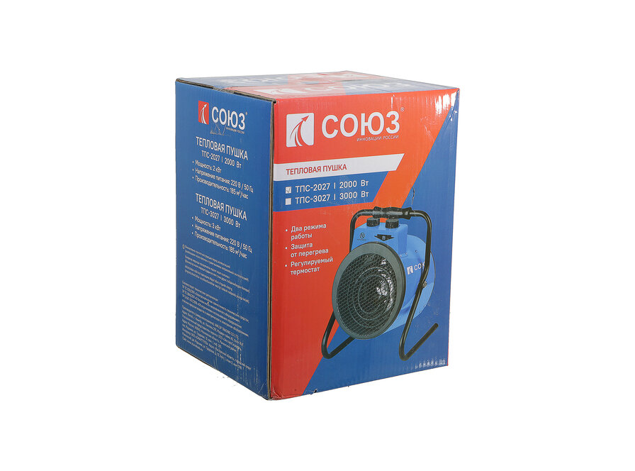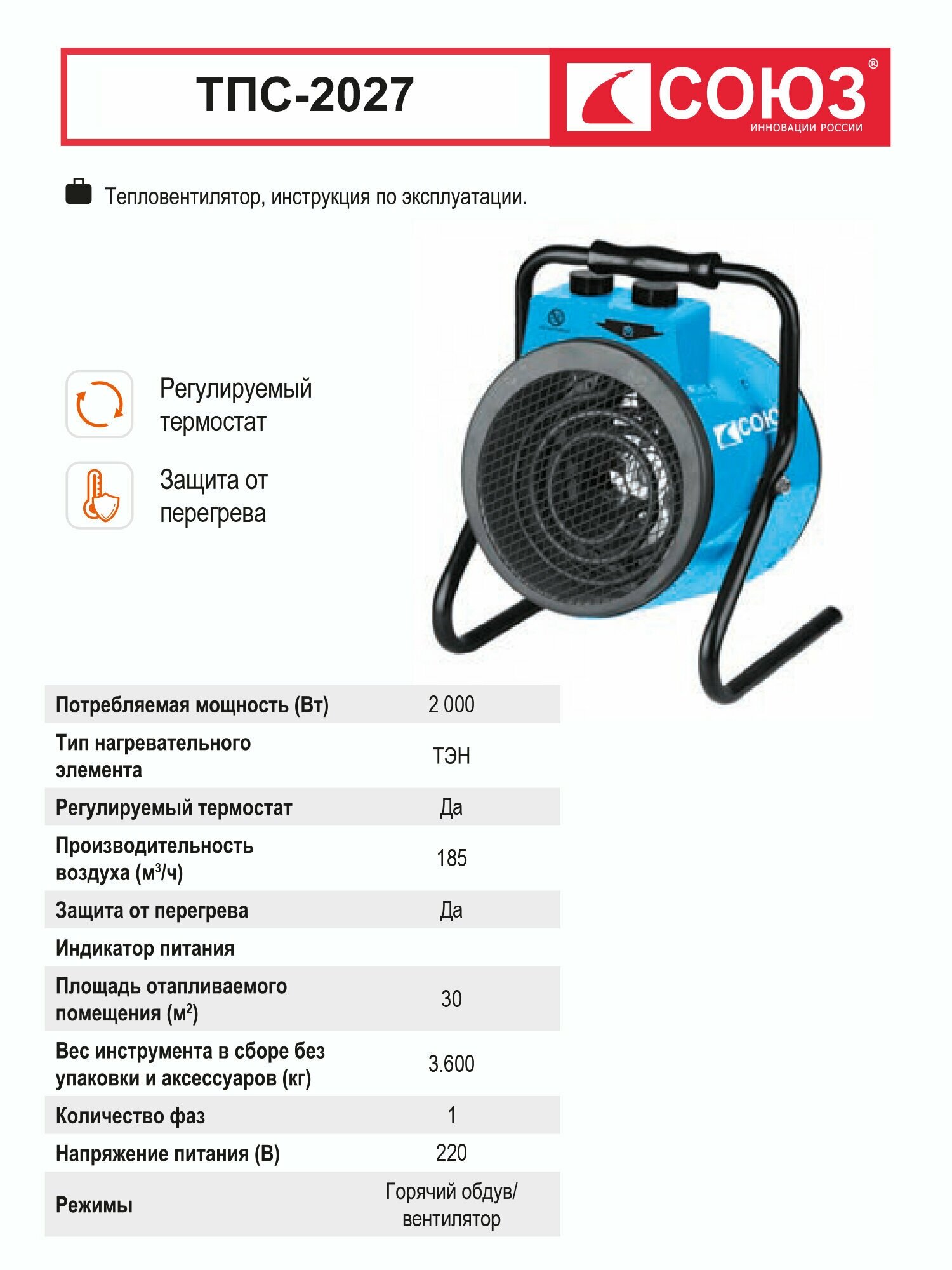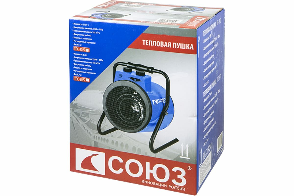 ТПС-2027 Электрическая тепловая пушка 2 кВт, СОЮЗ, 185 м3/час, 2 режима, термостат