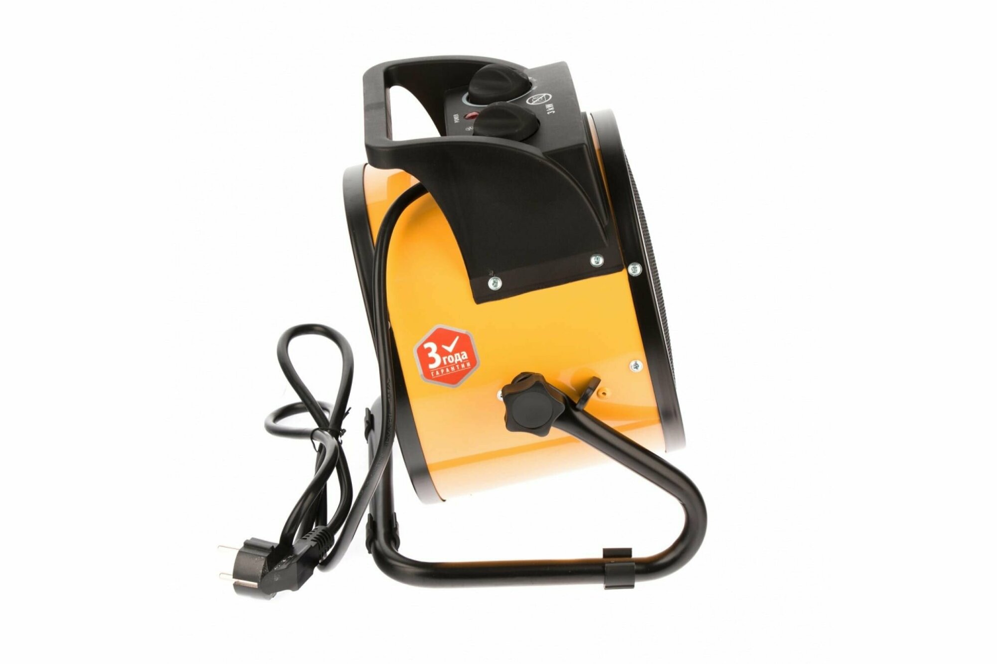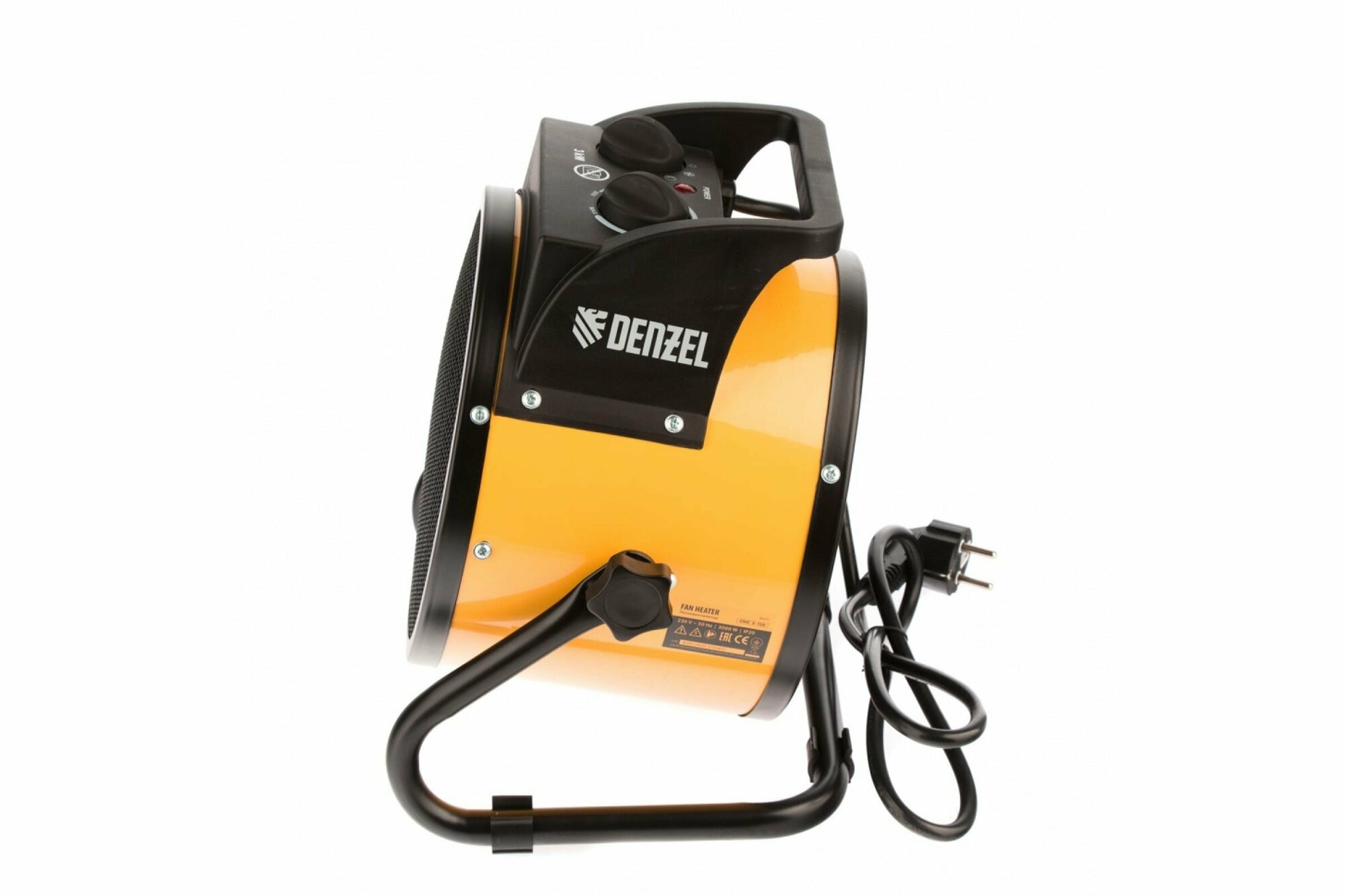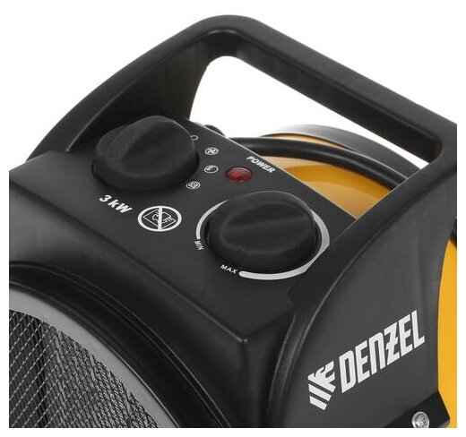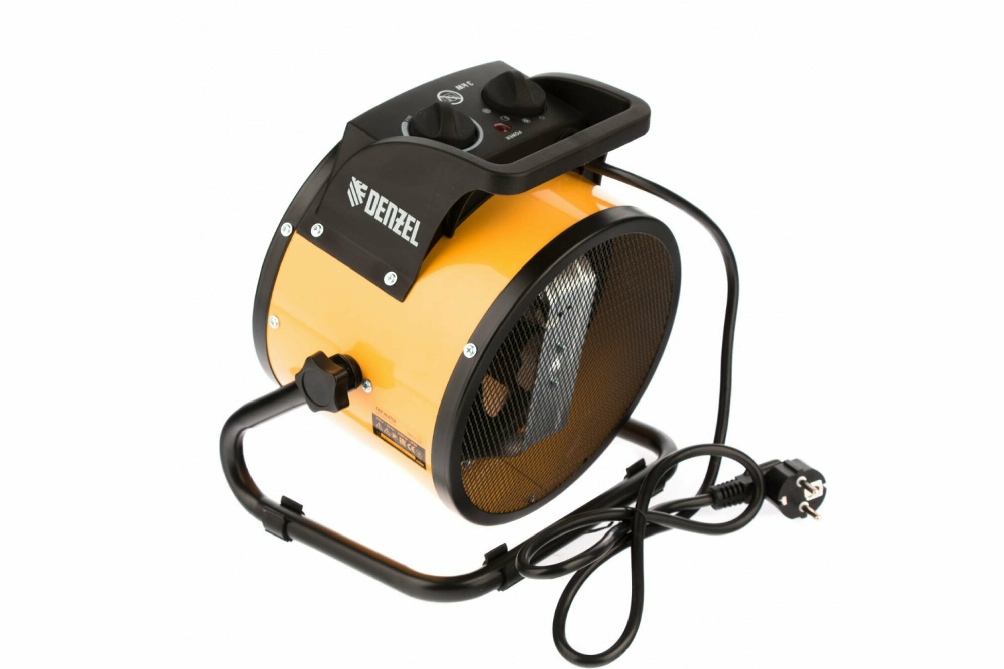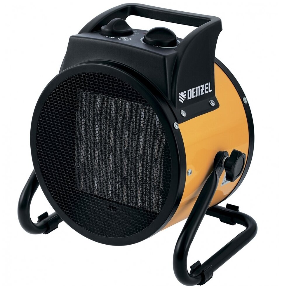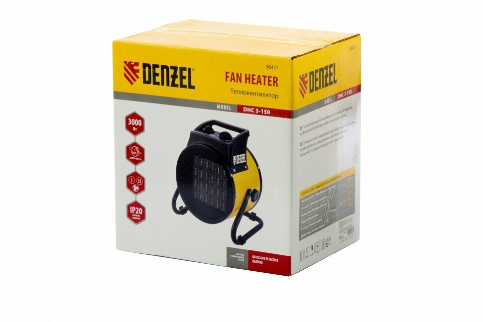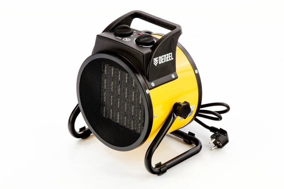 Однофазная тепловая пушка Denzel DHC 3-150 подходит для бытового и полупрофессионального применения. С ее помощью можно обогреть помещение до 40 м2 или дистанционно просушить поверхность после отделки (оштукатуренные и окрашенные стены, стяжки). А в жару ее можно использовать как вентилятор для проветривания. В качестве нагревательного элемента используется керамическая пластина, поэтому тепловентилятор безопасен для людей и животных: она не сушит воздух и не выделяет вредных веществ. Двухуровневая система защиты не допустит возгорания: питание отключается автоматически при перегреве за счет биметаллического многоразового предохранителя, а одноразовый термодатчик обеспечивает аварийное отключение, если не сработал предохранитель. Преимущества: Интуитивно понятное управление - переключение режимов происходит с помощью двух механических тумблеров. В зависимости от погодных условий можно выбрать подходящий режим: вентиляция (без нагрева), теплый воздух 1,5 кВт, горячий воздух 3 кВт. Термостат поддерживает постоянную температуру в помещении без необходимости контроля пользователя. Корпус регулируется по вертикали с помощью ручки на корпусе, что позволяет наводить его на конкретную область для эффективной просушки и обогрева. Термостойкая краска, которой окрашен корпус, предотвращает появление коррозии. Передняя и задняя решетки на корпусе защищают пользователя от случайного соприкосновения с рабочими элементами. Предусмотрен световой индикатор, который загорается при включении пушки и информирует пользователя о работоспособности устройства. Вес 2,9 кг и ручка на корпусе облегчают транспортировку и хранение. Предусмотрена широкая опора с четырьмя ножками для лучшего сцепления с поверхностью, что обеспечивает устойчивость тепловой пушки.