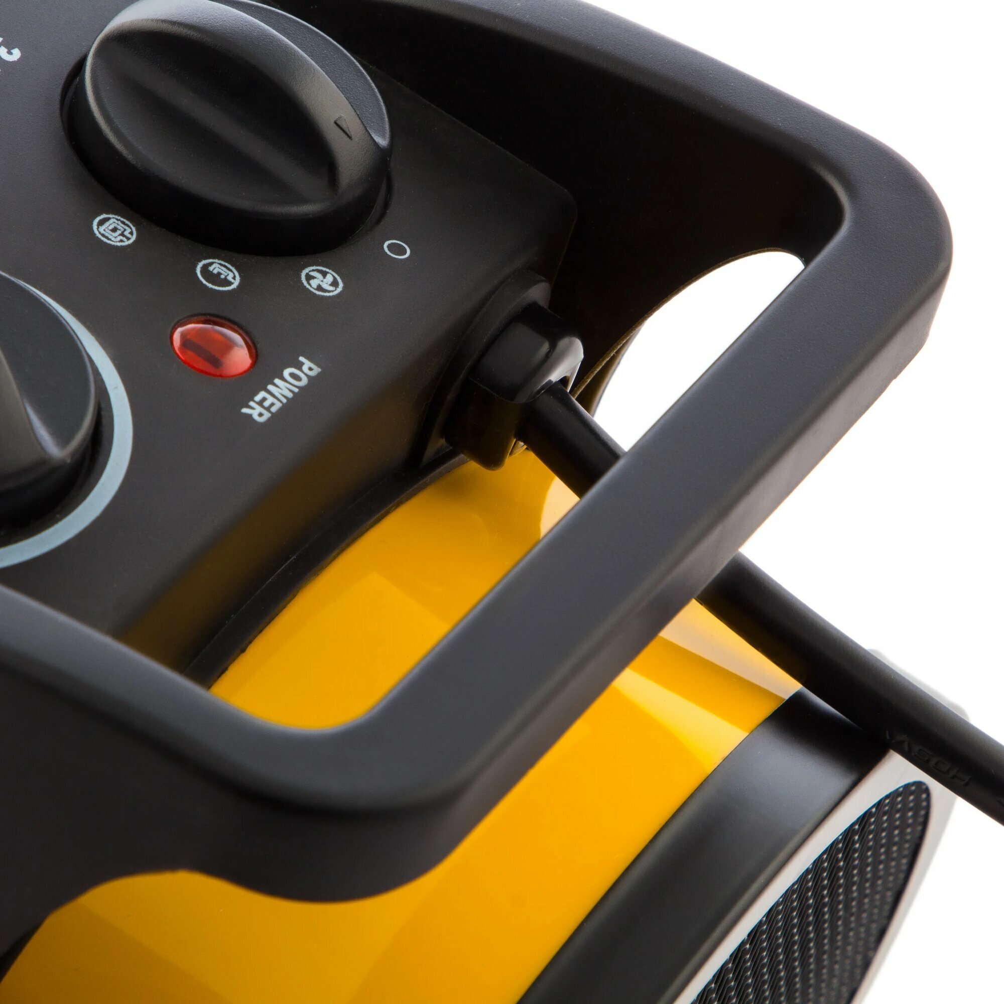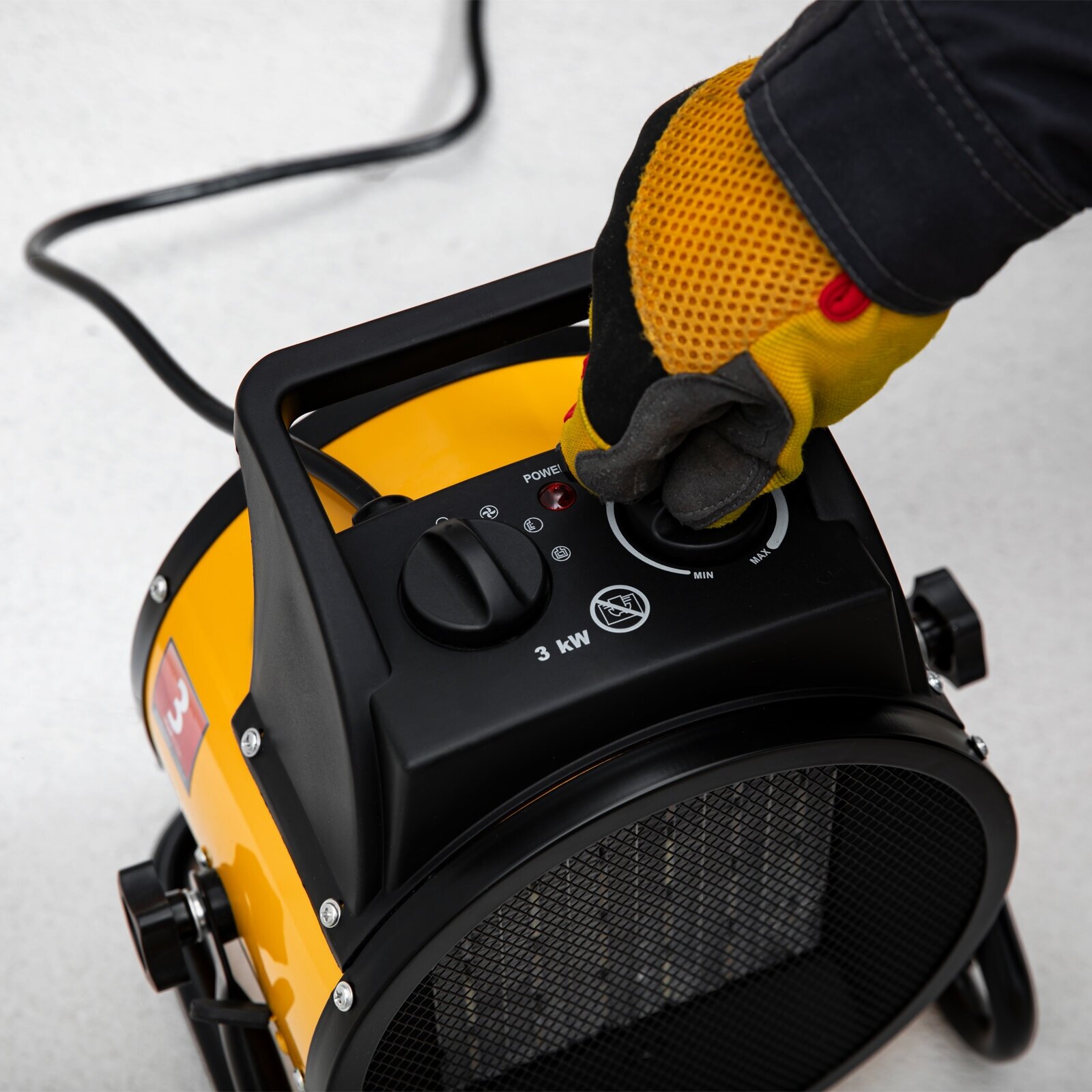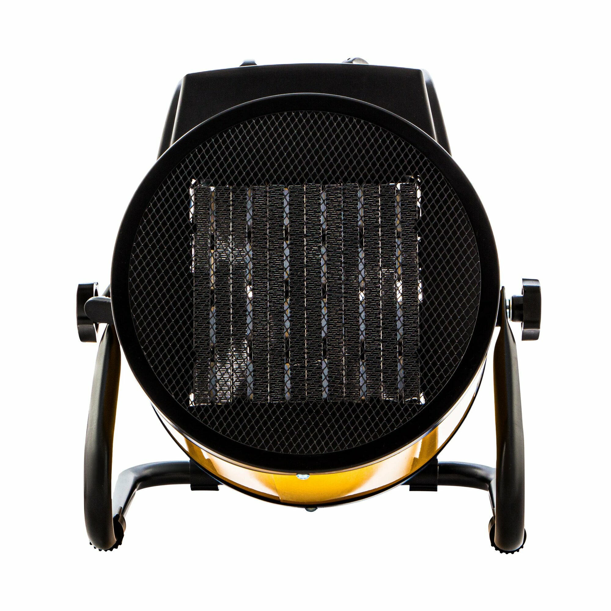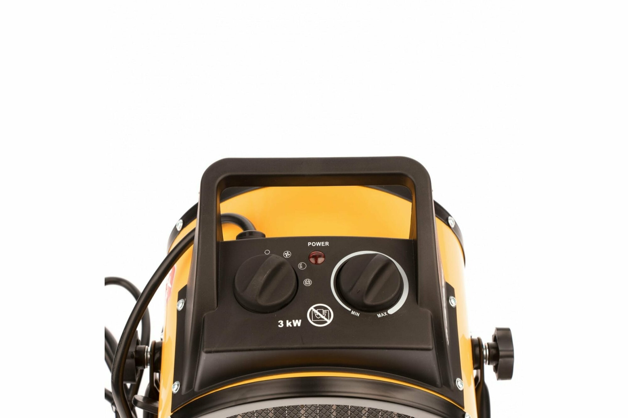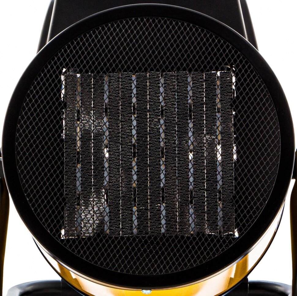 Однофазная тепловая пушка Denzel DHC 3-150 подходит для бытового и полупрофессионального применения. С ее помощью можно обогреть помещение до 40 м2 или дистанционно просушить поверхность после отделки (оштукатуренные и окрашенные стены, стяжки). А в жару ее можно использовать как вентилятор для проветривания. В качестве нагревательного элемента используется керамическая пластина, поэтому тепловентилятор безопасен для людей и животных: она не сушит воздух и не выделяет вредных веществ. Двухуровневая система защиты не допустит возгорания: питание отключается автоматически при перегреве за счет биметаллического многоразового предохранителя, а одноразовый термодатчик обеспечивает аварийное отключение, если не сработал предохранитель. Преимущества: Интуитивно понятное управление - переключение режимов происходит с помощью двух механических тумблеров. В зависимости от погодных условий можно выбрать подходящий режим: вентиляция (без нагрева), теплый воздух 1,5 кВт, горячий воздух 3 кВт. Термостат поддерживает постоянную температуру в помещении без необходимости контроля пользователя. Корпус регулируется по вертикали с помощью ручки на корпусе, что позволяет наводить его на конкретную область для эффективной просушки и обогрева. Термостойкая краска, которой окрашен корпус, предотвращает появление коррозии. Передняя и задняя решетки на корпусе защищают пользователя от случайного соприкосновения с рабочими элементами. Предусмотрен световой индикатор, который загорается при включении пушки и информирует пользователя о работоспособности устройства. Вес 2,9 кг и ручка на корпусе облегчают транспортировку и хранение. Предусмотрена широкая опора с четырьмя ножками для лучшего сцепления с поверхностью, что обеспечивает устойчивость тепловой пушки.