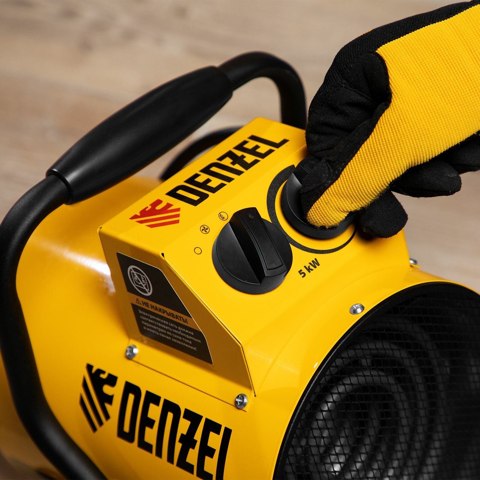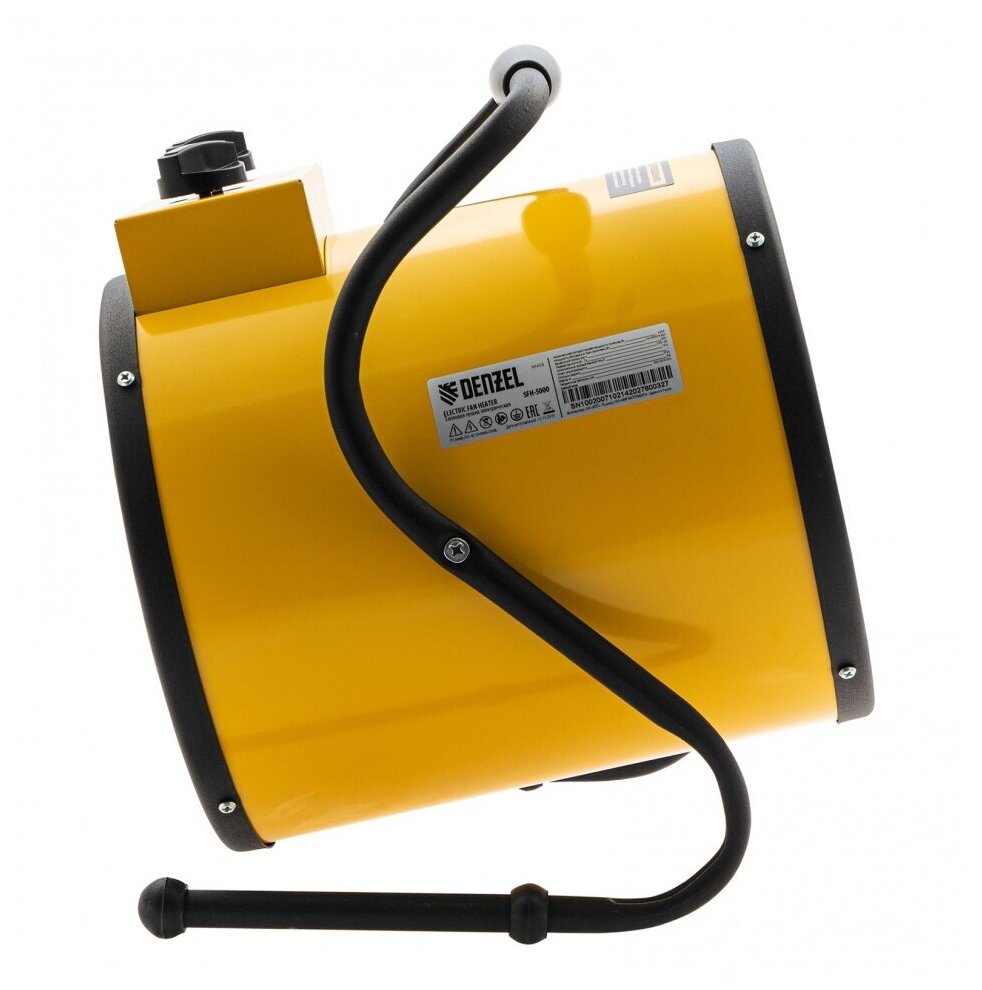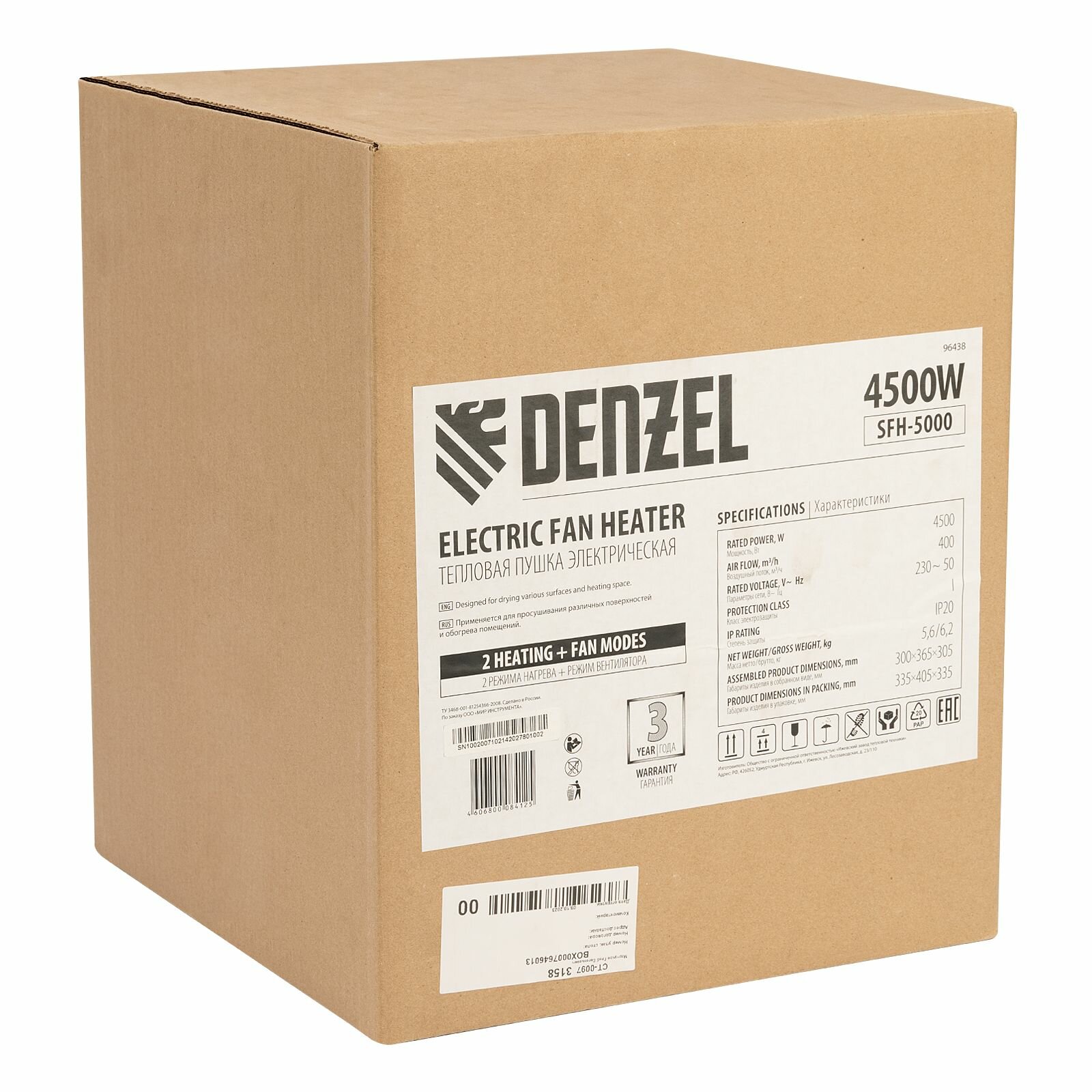 Тепловая пушка профессиональной серии Denzel SFH-5000 96438 питается от сети 230 В, генерирует воздушный поток мощностью 260 куб. м/ч и работает в одном из трех режимов: вентилятор и нагрев 3000/4500 Вт. Предназначена для обогрева или вентиляции складских, производственных, общественных помещений площадью до 45 кв. м. Может использоваться для дистанционной просушки поверхностей, например, окрашенных или оштукатуренных стен во время отделочных работ.