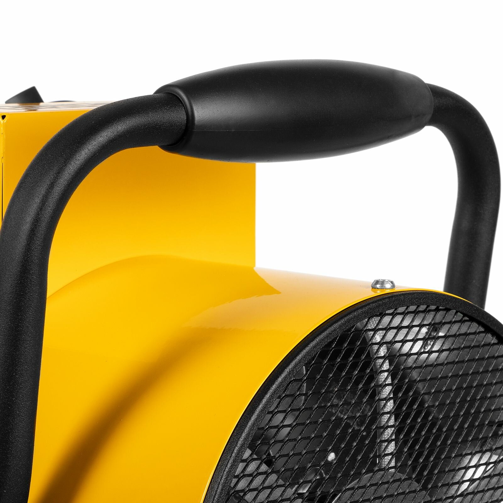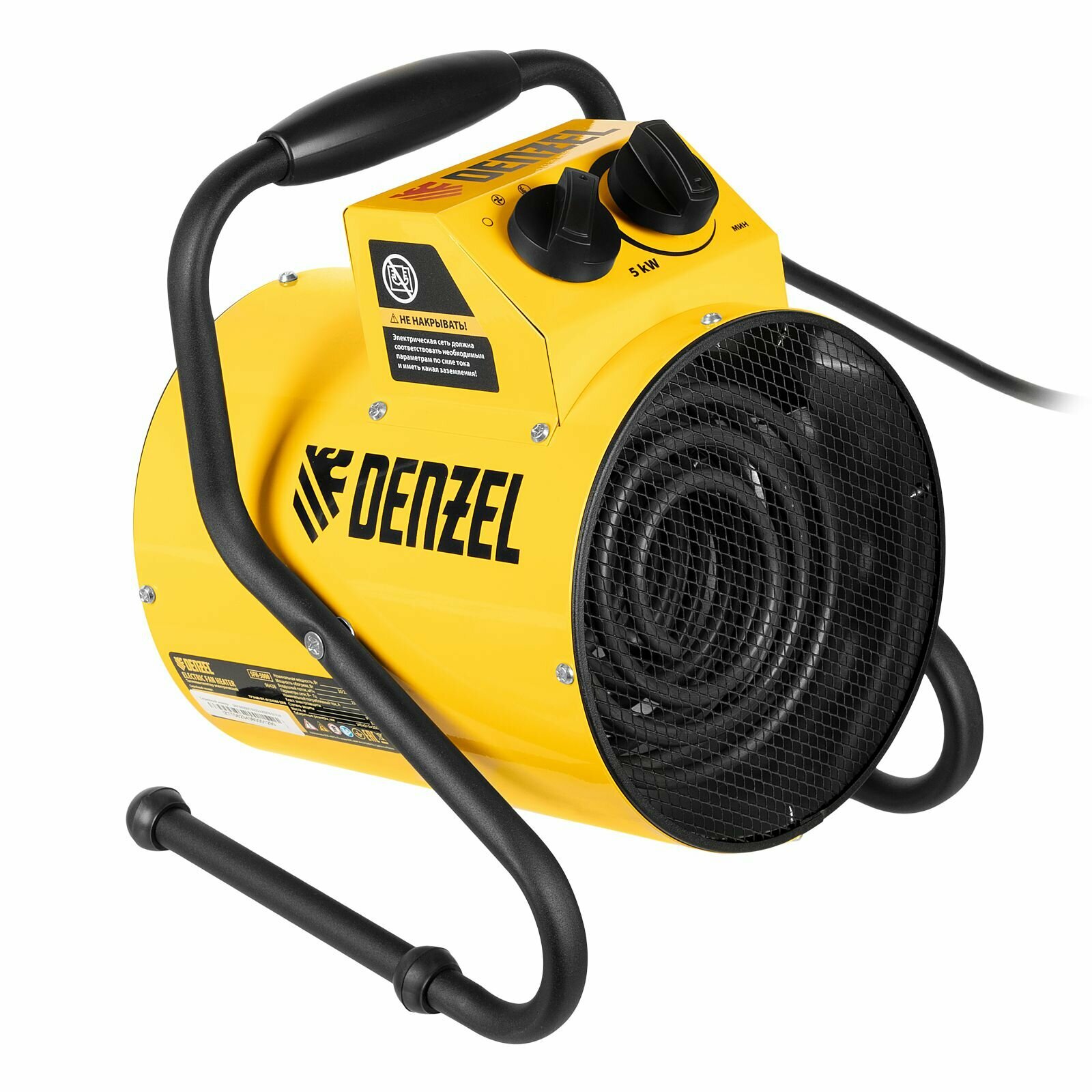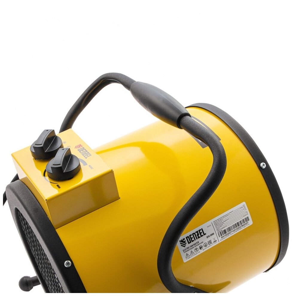 Тепловая пушка профессиональной серии Denzel SFH-5000 96438 питается от сети 230 В, генерирует воздушный поток мощностью 260 куб. м/ч и работает в одном из трех режимов: вентилятор и нагрев 3000/4500 Вт. Предназначена для обогрева или вентиляции складских, производственных, общественных помещений площадью до 45 кв. м. Может использоваться для дистанционной просушки поверхностей, например, окрашенных или оштукатуренных стен во время отделочных работ.
