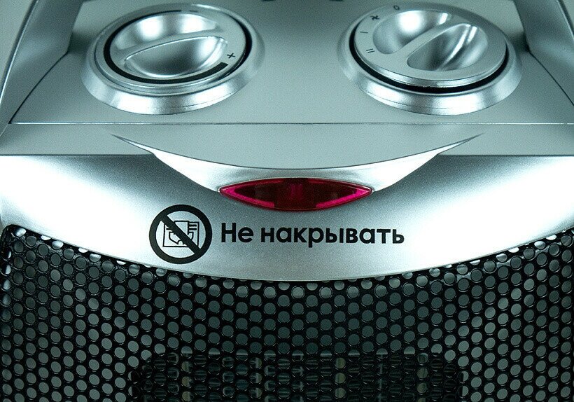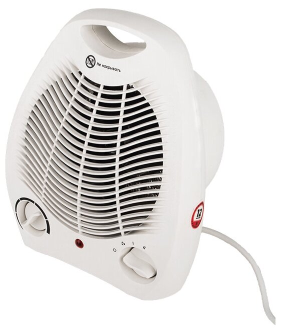 Три режима работы: вентилятор (12Вт), частичный обогрев (1000Вт), полный обогрев (2000Вт).