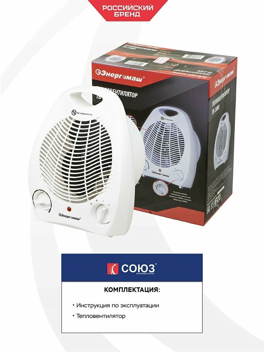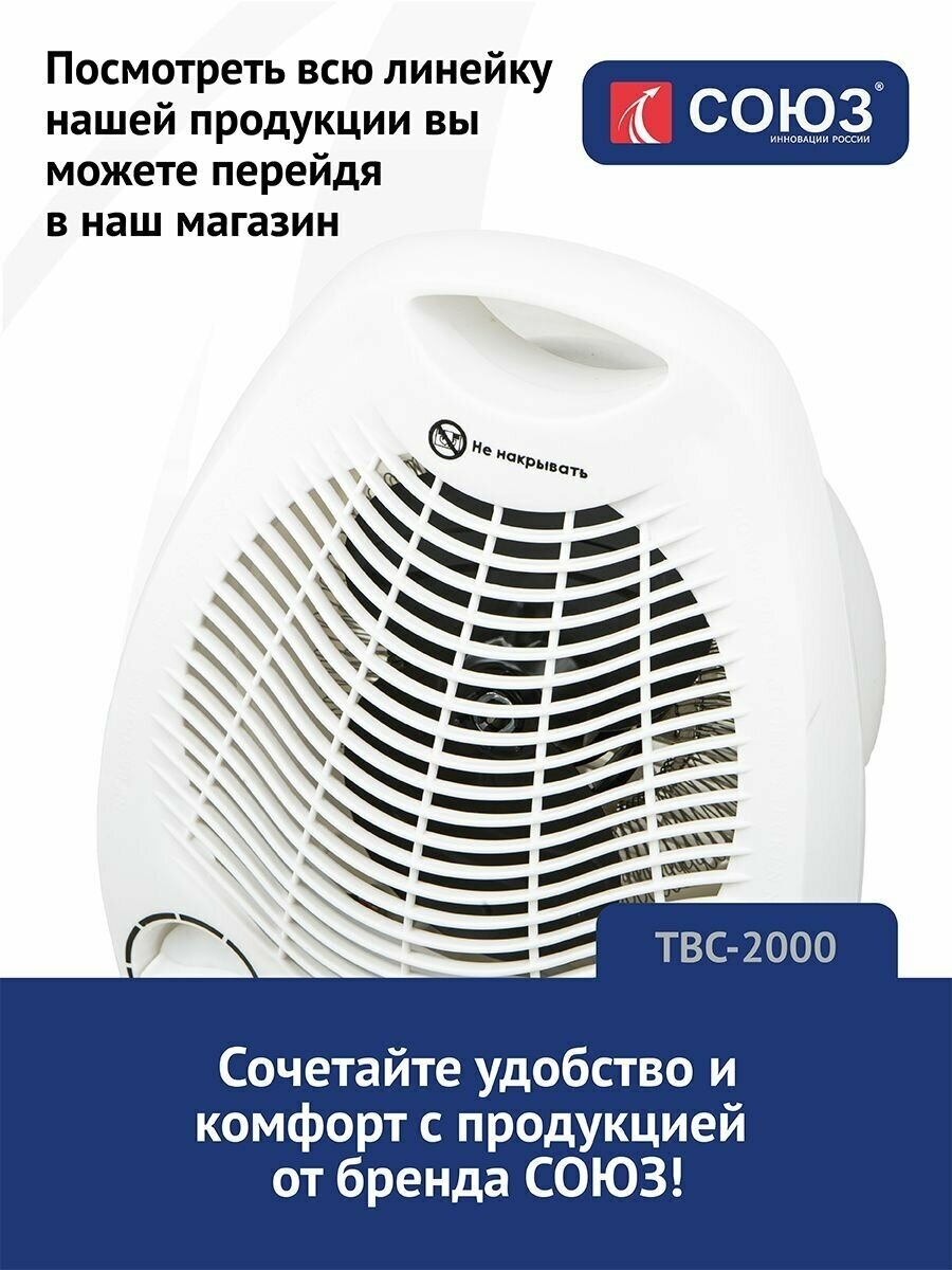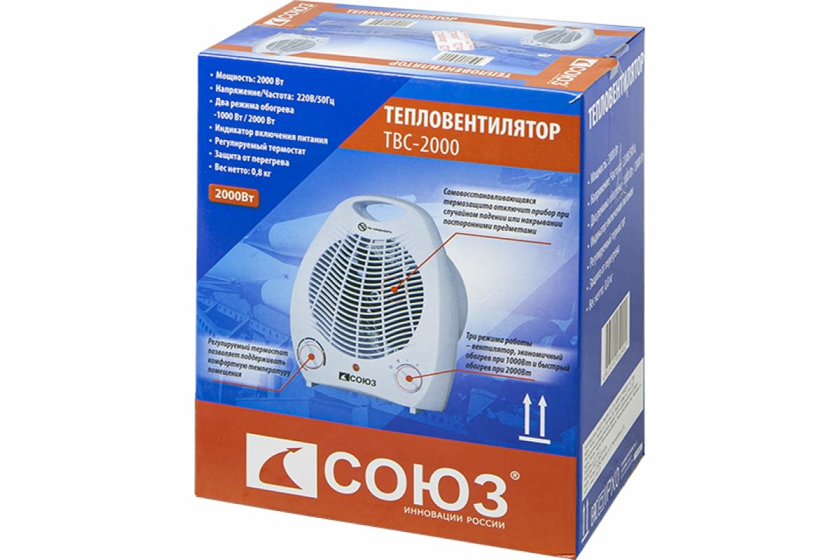 ТВС-2000 Тепловентилятор 2000W,3 реж., рег. термостат,защит.от перегрева,ручка д/переноски СОЮЗ