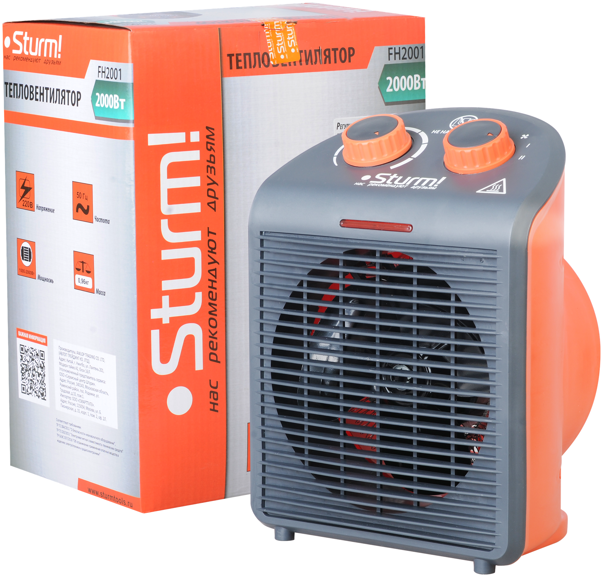Sturm FH2001 – мобильный тепловентилятор мощностью 2 кВт –предназначен для вспомогательного обогрева жилых помещений площадью до 20 м2. Модель выполнена в современном, интерьерном дизайне и отличается минимальными габаритами, и весом. Обогреватель оснащен надежным и долговечным спиральным нагревательным элементом, обеспечивающим быстрый и равномерный прогрев помещения. Для того, чтобы обеспечить высокую производительность воздушного потока, проходящего через нагревательный элемент и ускорить циркуляцию нагретого воздуха, устройство имеет встроенный мощный вентилятор. Управление обогревателем осуществляется с помощью пары регуляторов, размещенных на верхней панели. С помощью первого регулятора пользователь выбирает один из трех режимов работы: вентиляция без нагрева / теплый обдув / горячий обдув. Второй регулятор отвечает за настройку термостата. Для визуального контроля включенного устройства, предусмотрен отдельный индикатор питания. Безопасность использования обеспечивают встроенная термозащита и корпус из жаропрочного пластика. Назначение: предназначен для вспомогательного обогрева жилых помещений площадью до 20 м2.