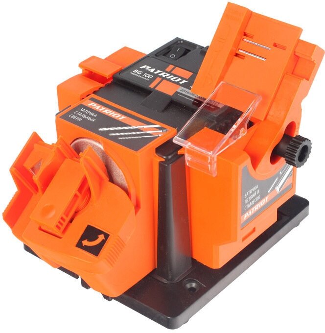 Многофункциональный точильный станок PATRIOT BG100 160301500 применяется для заточки сверел диаметром от 3 до 13 мм, зубил, лезвий размером от 6 до 51 мм, а также ножей и ножниц. Диск диаметром 56 мм имеет напыление из материала карборунд, что обеспечивает его износостойкость. Модель проста и удобна в эксплуатации, не требует специального технического обслуживания. Защитный экран позволяет визуально контролировать выполнение операции, а также оберегает оператора от вылета искр. Наличие специальных отверстий в основании устройства позволяет крепить аппарат к поверхности. Технические характеристики станка PATRIOT BG100 Тип для инструментаНапряжение, В 220Передача прямаяЧастота вращения шлиф. круга, об/мин 1350Размер заточного круга, мм 51Посадочный диаметр, мм 10Толщина круга, мм 8Зернистость круга 180Вес нетто, кг 1,1Габариты без упаковки, мм 233х155х200Мощность двигателя, Вт 65Подсветка нетНаличие защитного экрана даСо стойкой нетС пылесосом нетС тихоходным кругом нетС гравером нет Преимущества станка PATRIOT BG100 Прорезиненный морозостойкий кабель; Компактный корпус в возможностью фиксации; Высокое качество сборки; Небольшой вес и габариты. Комплектация Точильный станок; Диск; Инструкция; Гарантийный талон; Упаковка. Информация об упаковке Единица товара: ШтукаВес, кг: 1,63Длина, мм: 246Ширина, мм: 212Высота, мм: 157