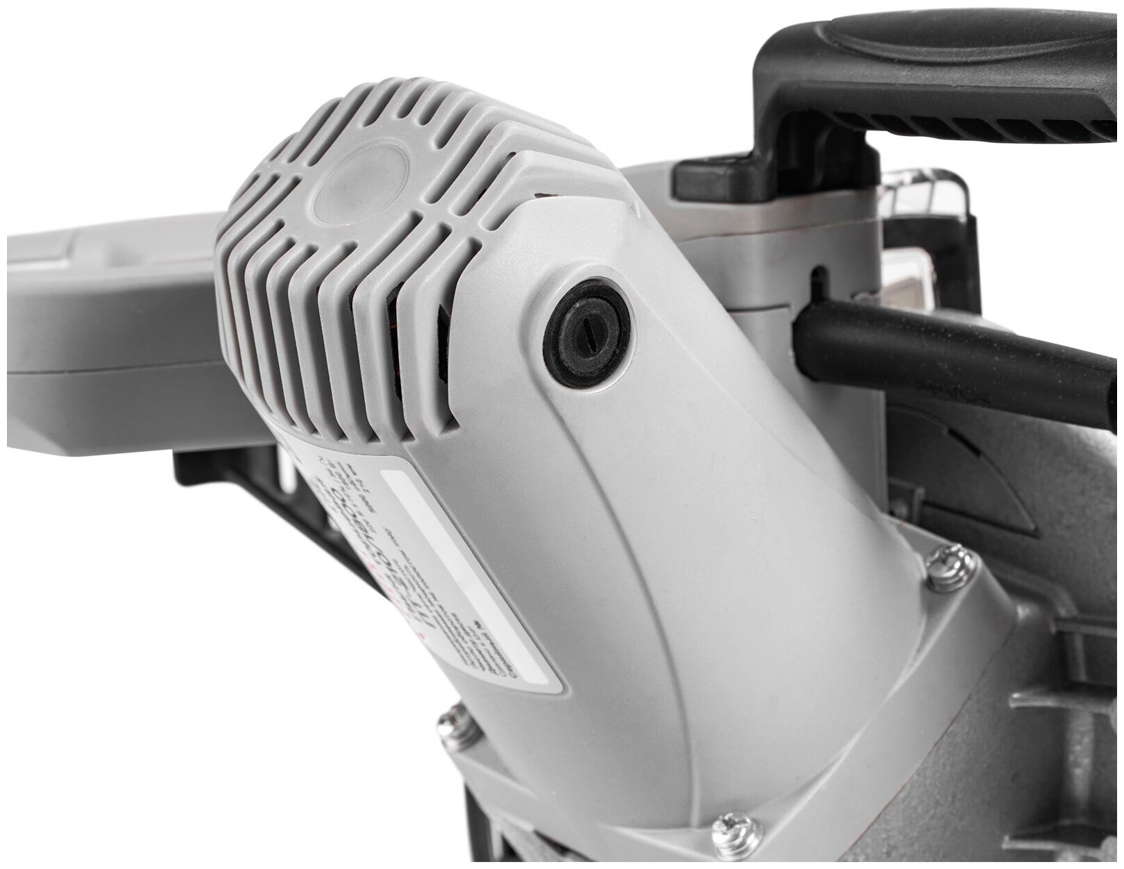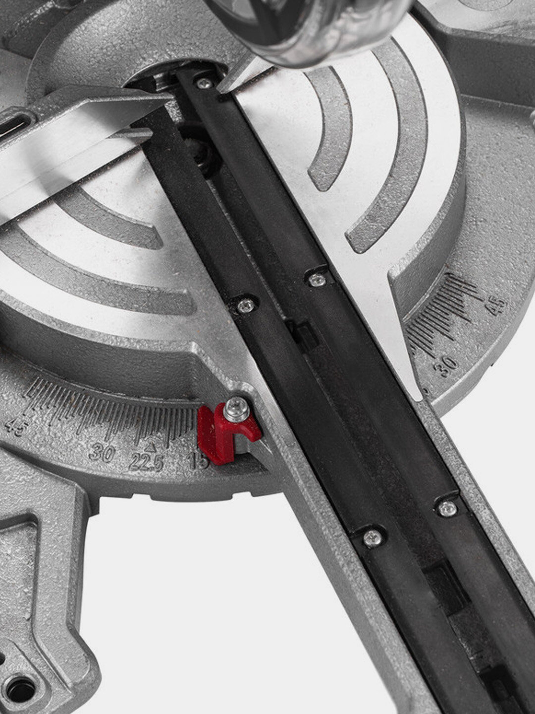 Серия профессионал: Отличается наличием направляющих, благодаря которым осуществляется распил широких заготовок. Большой алюминиевый стол: Гарантирует лучшую фиксацию обрабатываемого материала. Комфортная работа: Удобная эргономичная рукоятка обеспечивает работу без утомления. Чистота рабочего места: Система пылеудаления с возможностью подключения пылесоса или мешка для сбора опилок сохранит рабочее место в чистоте. Быстрая замена щеток: Имеется прямой доступ к щеточному узлу, что позволяет легко заменить угольные щетки, не разбирая корпус инструмента. Безопасность: Блокировка кнопки запуска защищает инструмент от случайных включений. ,