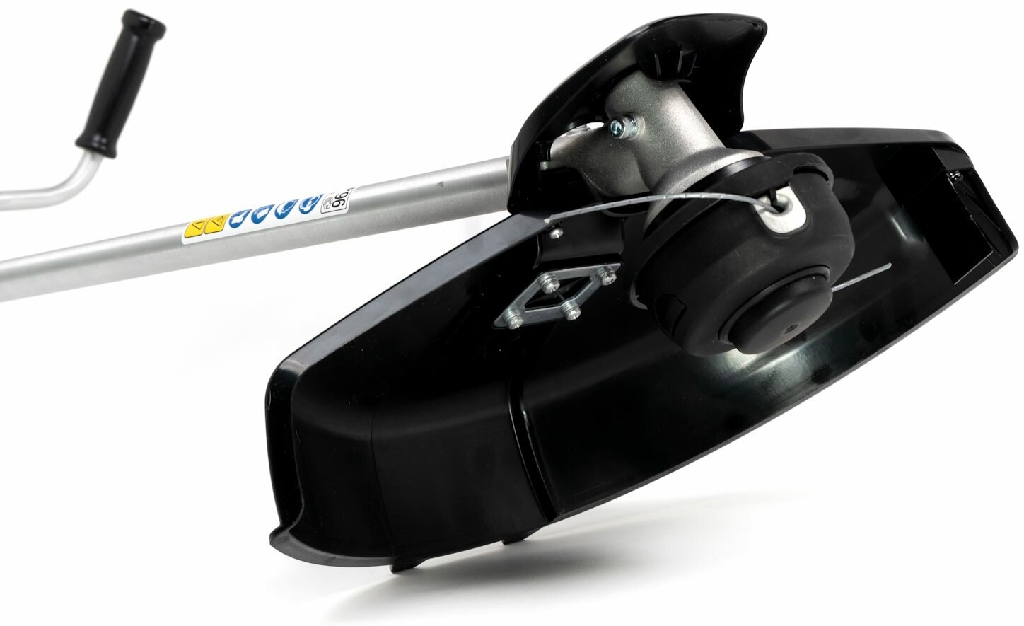 Триммер имеет верхнее расположение двигателя, что продлевает его рабочий ресурс . Прочный стальной вал эффективно передает вращение от двигателя к режущей головке, гарантируя надежность и долговечность инструмента. Эргономичная велосипедная рукоятка позволяет комфортно работать на больших площадях, обеспечивая точный контроль и снижая усталость оператора.