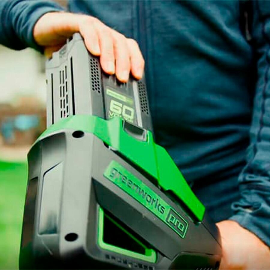 Триммер из серии 60V для стрижки грубой травы. Имеет ширину кошения 40 см, леску 2 мм с автоподачей. Оснащен бесщеточным двигателем и велосипедной рукояткой.