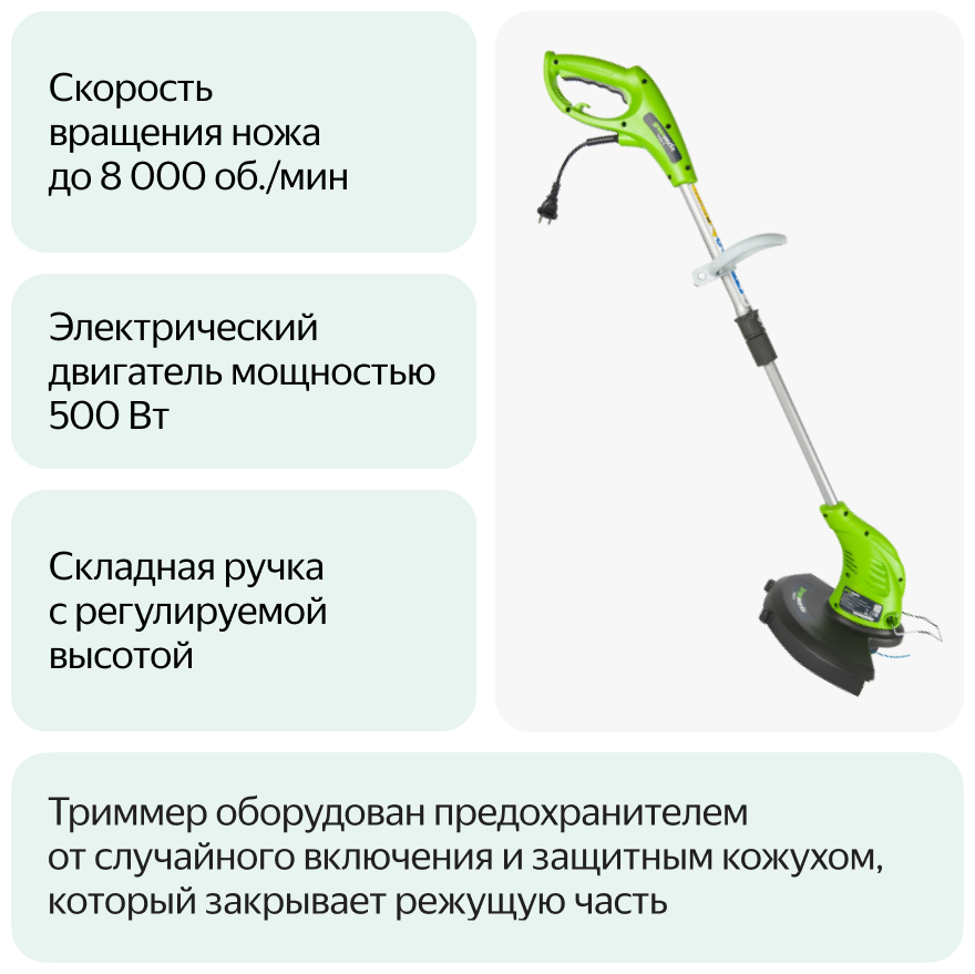 Электрический триммер GreenWorks GST5033 Basic 21217 - легкий инструмент для очистки от растительности труднодоступных мест. Оснащен катушкой с нейлоновой режущей леской. Телескопическая штанга позволяет регулировать длину триммера для комфорта пользователя. Две рукоятки способствуют удобному ведению инструмента в любом положении.