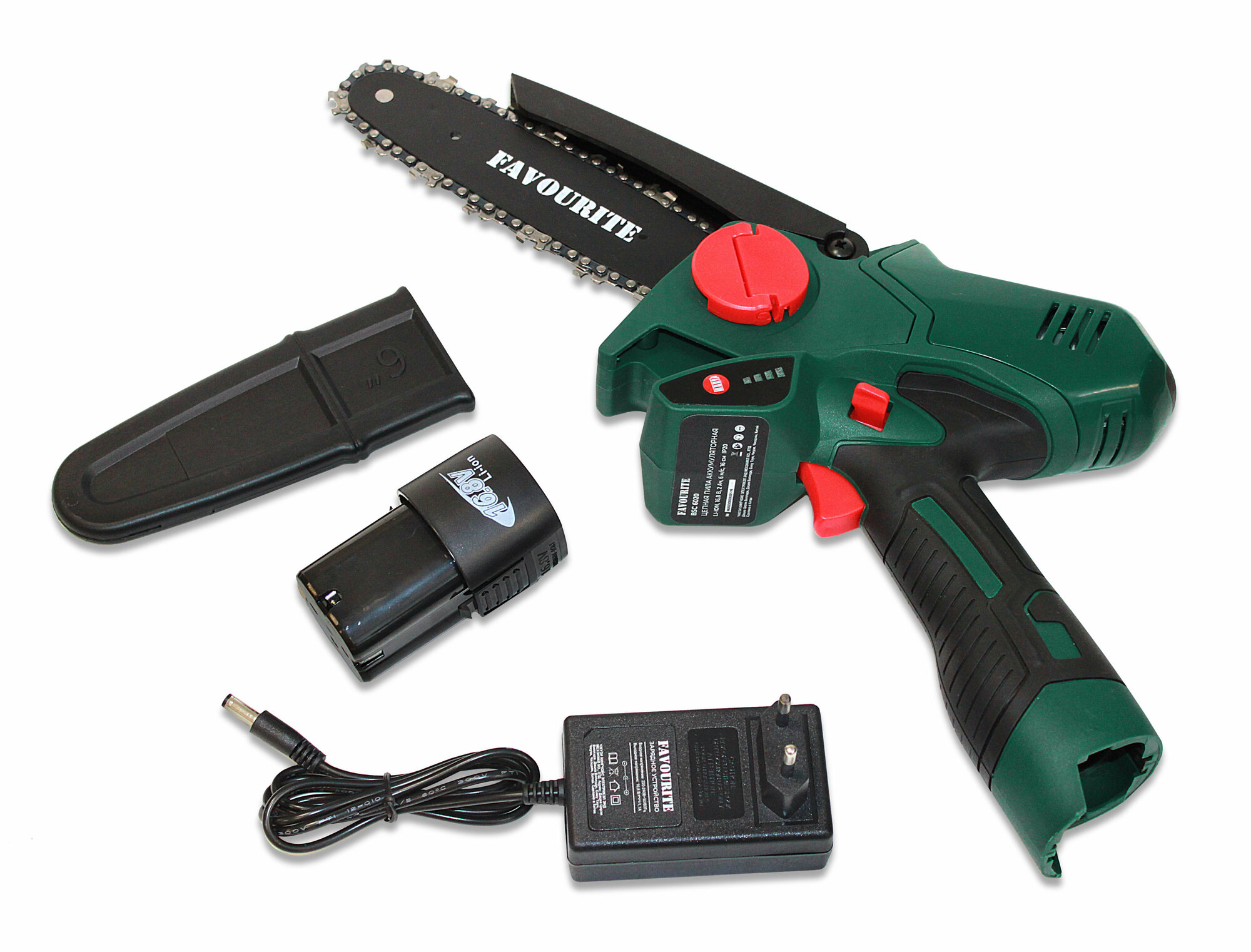 Цепная аккумуляторная пила FAVOURITE BSC 6020 Li-ion - это отличный выбор для тех, кто ищет надежный и удобный инструмент для работы на даче или в саду. Пила оснащена мощным двигателем 16,8 В и цепью с шагом 3/8 дюйма, что обеспечивает высокую производительность и точность реза. Кейс в комплекте включает зарядное устройство и две батареи емкостью 2 А· ч, что позволяет работать без перерывов на зарядку. Эта пила идеально подходит для обрезки деревьев, сучьев и других задач. Преимущества Мощный двигатель 16,8В обеспечивает высокую производительность. Цепь с шагом 3/8" обеспечивает высокую точность реза и быстрый распил. Кейс с зарядным устройством и двумя батареями емкостью 2А· ч позволяет работать без перерывов. Компактный и легкий дизайн обеспечивает удобство использования и транспортировки. Эргономичная ручка и регулировка угла наклона позволяют точно и удобно держать пилу. Комплектация Цепная пила, зарядное устройство, аккумулятор 2А/ч - 2шт, инструкция по эксплуатации, кейс. Характеристики Габариты - 395 х 80 х 180 ммДлина шины - 160 ммКласс защиты - IP 32Тип двигателя - щеточныйШаг цепи (дюйм) - 3/8Масса - 1,1 кгРасположение двигателя - продольноеКоличество ведущих звеньев цепи - 37Механизм натяжения цепи - безинструментальноеНоминальная частота вращения на холостом ходу - 3000 об/минНапряжение аккумулятора - 16,8 ВТип АКБ - Li-ionЁмкость АКБ - 2,0 А/чШирина паза шины - 1,1 ммТолщина ведущих звеньев цепи - 1,0 ммСкорость цепи на максимальных оборотах - 6 м/с