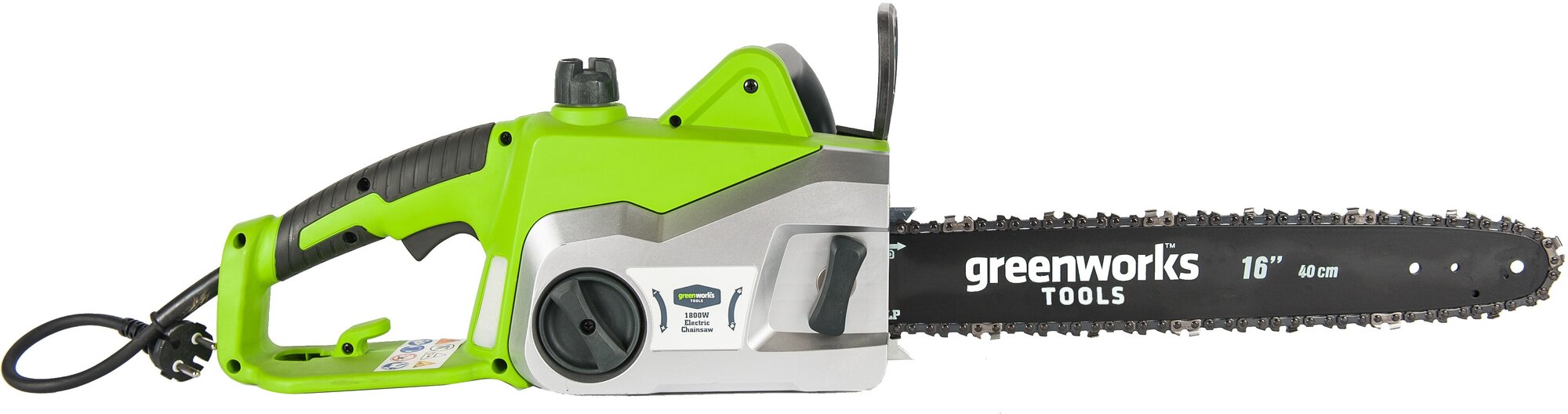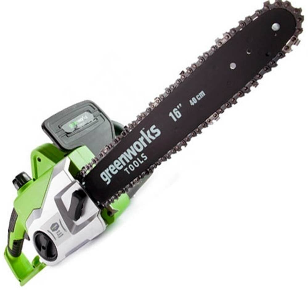 Цепная электрическая пила GreenWorks модель GCS1840 из серии устройств 230V - отлично подойдет для заготовки дров, пиления деревьев, веток и сучьев на приусадебном участке.
