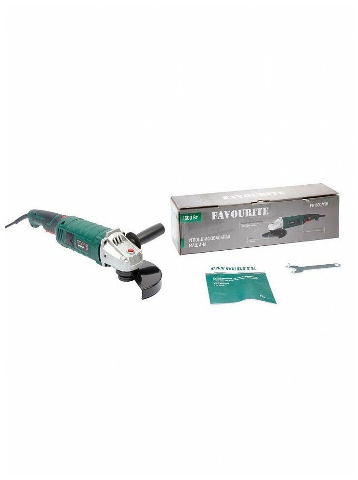 Углошлифовальная машина FAVOURITE FG 1600/150 применяется для различных видов работ по шлифованию и резанию металлов и других материалов. Данный инструмент оснащен двигателем мощностью 1600 Вт с регулировкой оборотов. Для работы применяются диски диаметром 150 мм. с посадочным отверстием 22 мм. Рукоятки инструмента оснащены мягкими нескользящими накладками для надежного хвата и удержания шлифмашины во время работы. Потребляемая мощность (Вт) 1600 Число оборотов на холостом ходу (об/мин) 3000 Диаметр диска (мм) 150 Посадочный диаметр диска (мм) 22.2 Резьба на шпинделе M 14 Регулятор оборотов Да Особенности Компактный размер Да Система быстрой замены щеток Да Удобная рукоять Да Комплектация Ключ Да Комплект угольных щеток Да Боковая рукоять Да Защитный кожух Да