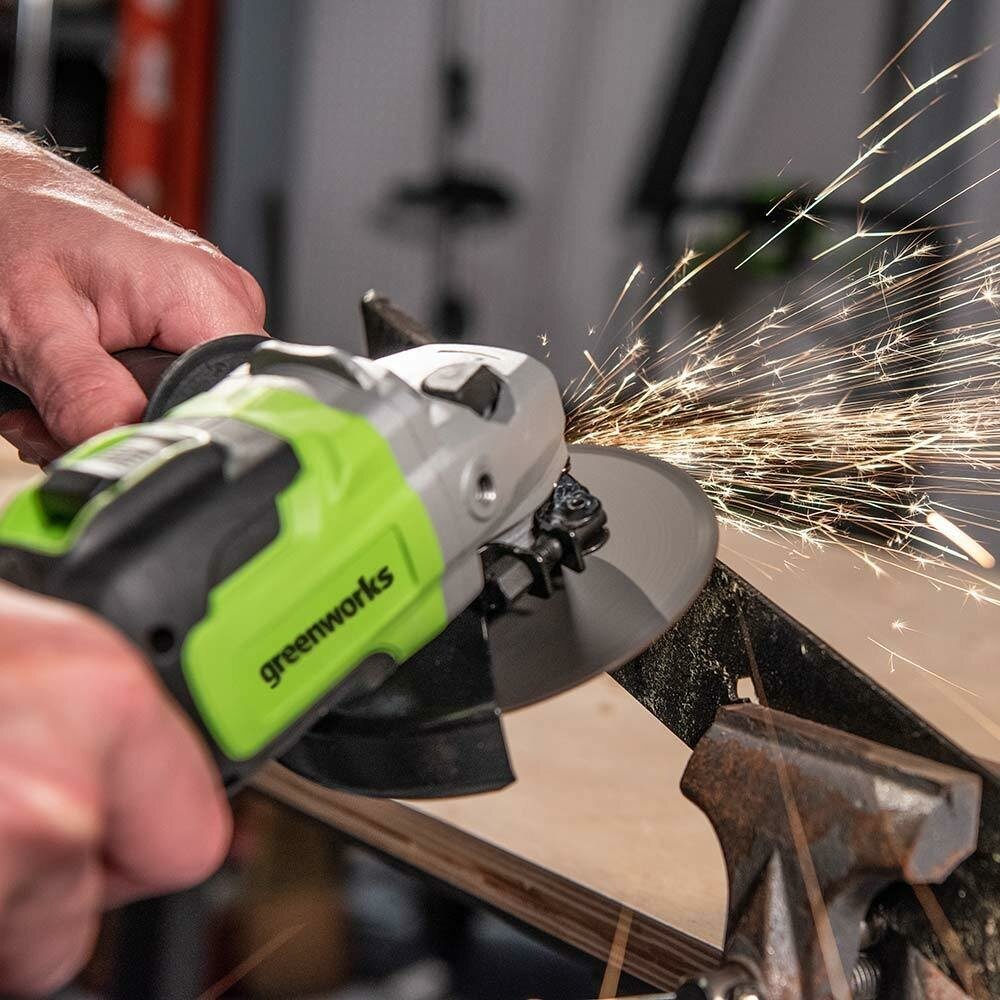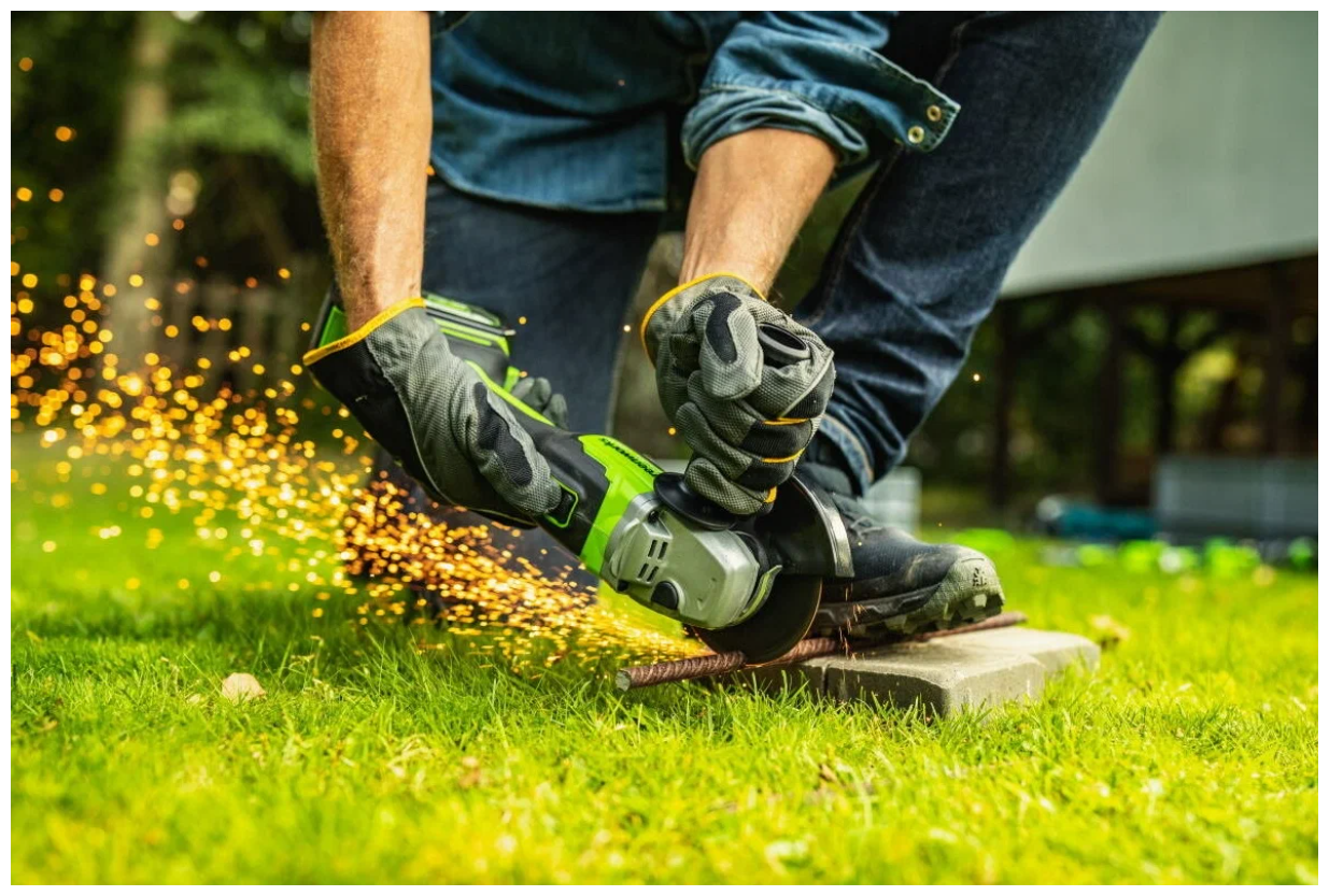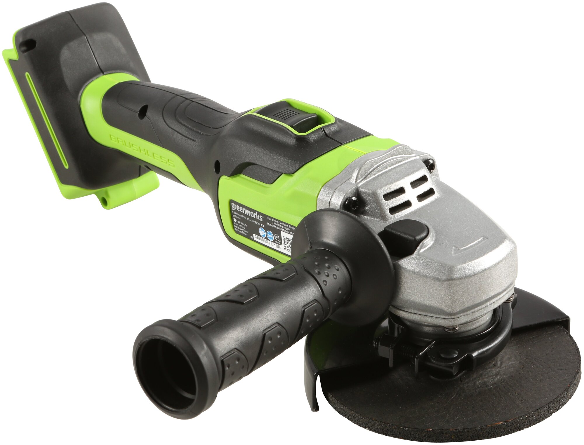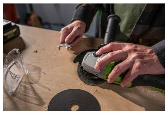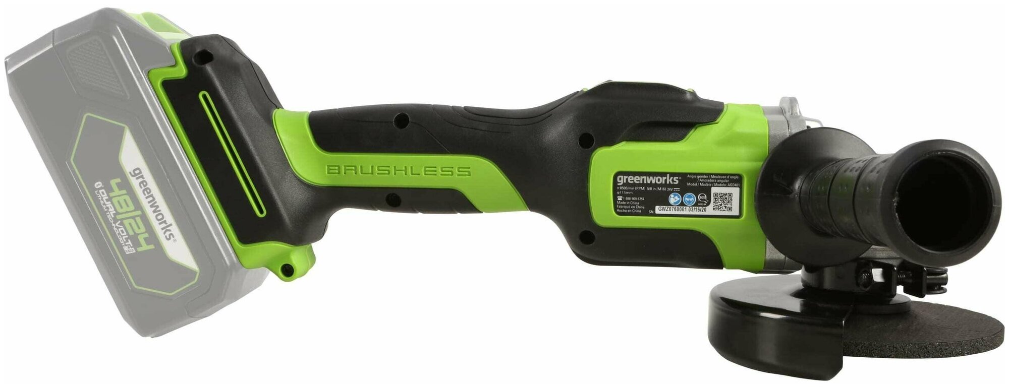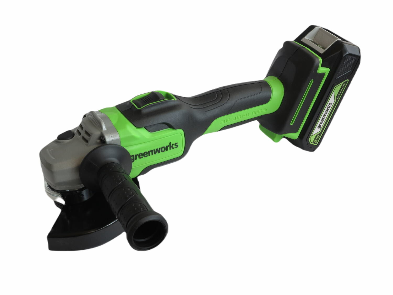 Комплект GD24AGK2 (Арт. 3200207UA): УШМ (болгарка), аккумулятор 24V 2 А*ч, зарядное устройство, удобная сумка-переноска. Угловая шлифовальная машина (болгарка) Greenworks 24V (модель GD24AG) - предназначена резки и шлифования металла. Мощный бесщеточный двигатель работает от аккумулятора 24В, что определяет высокую производительность и скорость реза. Максимальный размер режущего диска - 125 мм. Скорость вращения диска 10 500 оборотов в минуту. Рукоятка устройства прорезинена для улучшения контроля над машинкой и предотвращения выскальзывания инструмента из рук. Рукоятка очень удобно лежит в руке. В комплекте с устройством идет дополнительная боковая рукоять. УШМ оснащается ограничителем пускового тока для плавной регулировки пуска инструмента. Двигатель оснащен магнитным тормозом, который быстро останавливает режущий диск после выключения инструмента. Для быстрой замены оснастки УШМ оснащена блокировкой шпинделя. Важным преимуществом данной модели является малый вес - 1,5 кг. Для защиты двигателя от перегрева данная модель оснащена специальной вентиляцией и имеет систему охлаждение двигателя. В случае зажатия или блокировки режущего диска двигатель автоматически останавливается. Ударопрочный корпус устройства защищает его от повреждений, а металлический корпус редуктора еще больше увеличивает надежность инструмента. Посадочный диаметр - 22,2 мм. Блокировка двигателя при заклинивании диска. Серия Greenworks G-24V - включает в себя более 40 устройств. Приобретая данную модель в месте с аккумулятором, вы сможете использовать его аккумуляторную батарею с другими инструментами и садовой техникой 24В. Гарантия - 3 года. Состав комплекта: Угловая шлифовальная машина (Болгарка) Greenworks 24V, арт. 3200207, модель GD24AG; Боковая рукоятка; Ключ для монтажа диска; Аккумулятор 24В 2 А*ч; Зарядное устройство 2А; Руководство по эксплуатации; Гарантийный талон; Удобная сумка-переноска. Питание от аккумулятора 24V; Бесщеточный двигатель DigiPro; Максимальный размер режущего диска - 125 мм; Скорость вращения диска 10 500 оборотов в минуту; Рукоятка устройства прорезинена для улучшения контроля над машинкой и предотвращения выскальзывания инструмента из рук: Ограничитель пускового тока; Магнитный тормоз двигателя; Блокировка шпинделя; Малый вес - 1,5 кг. Ударопрочный корпус; Металлический корпус редуктора; Посадочный диаметр - 22,2 мм; Блокировка двигателя при заклинивании диска; Защиты двигателя от перегрева; Серия Greenworks G-24V - включает в себя более 30+ устройств. Приобретая данную модель в месте с аккумулятором, вы сможете использовать его аккумуляторную батарею с другими инструментами и садовой техникой 24В. Расширенная гарантия на инструмент 3 года. Гарантия на аккумулятор 2 года. Состав комплекта: Угловая шлифовальная машина (Болгарка) Greenworks 24V, арт. 3200207, модель GD24AG; Боковая рукоятка; Ключ для монтажа диска; Аккумулятор 24В 2 АЧ; Зарядное устройство 2А; Руководство по эксплуатации; Гарантийный талон; Удобная сумка-переноска.