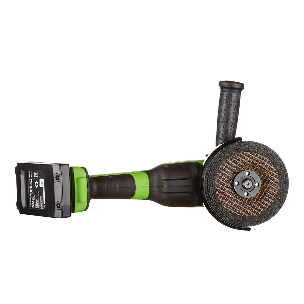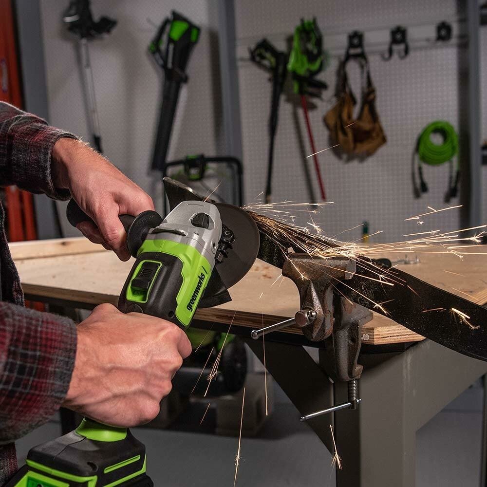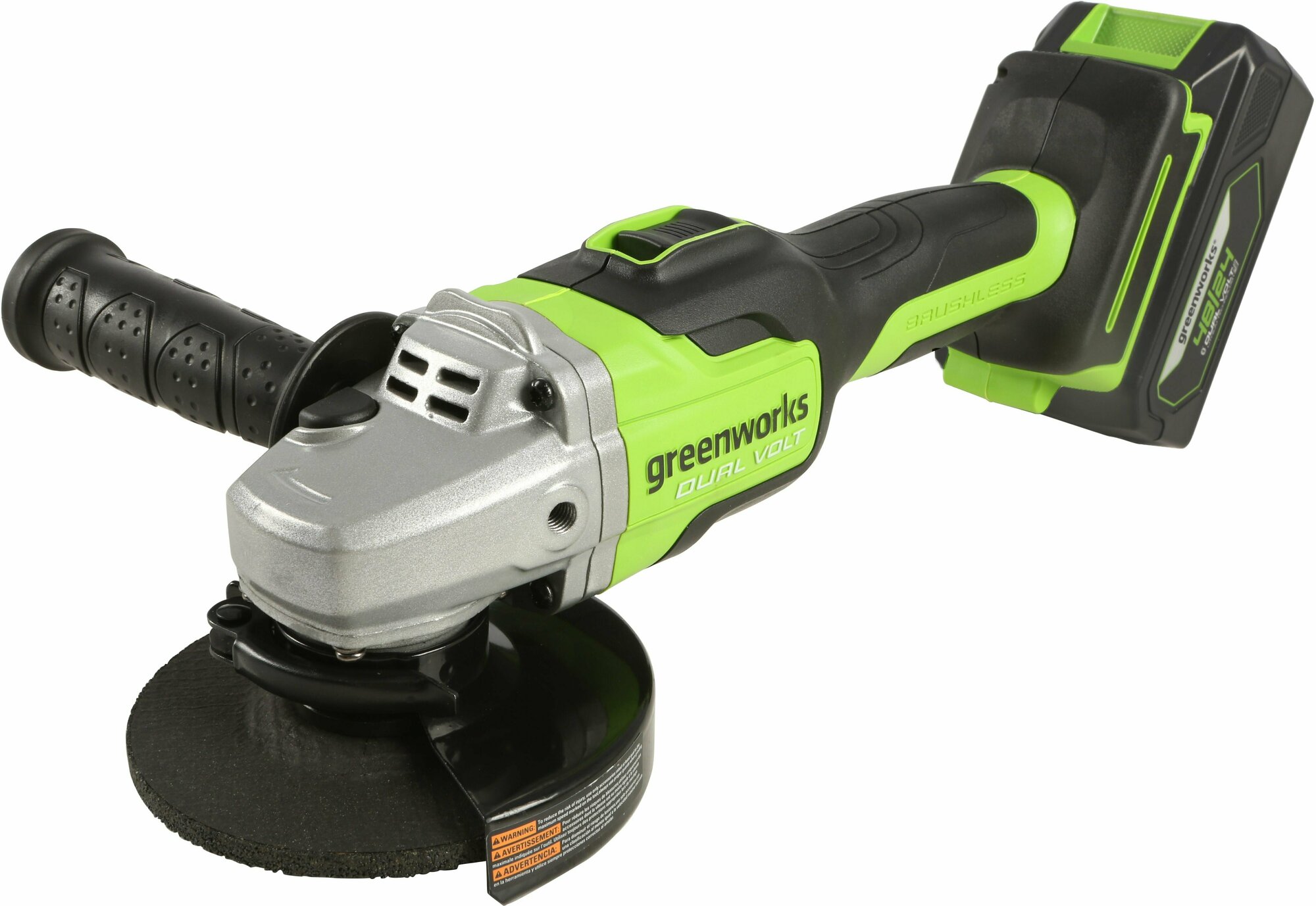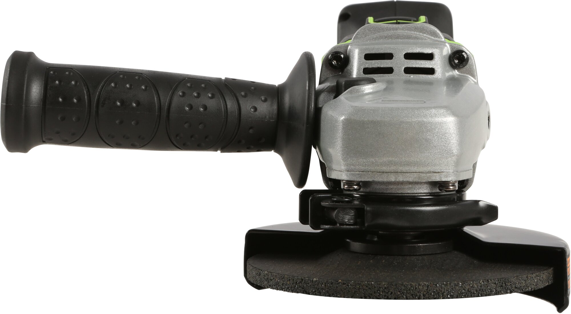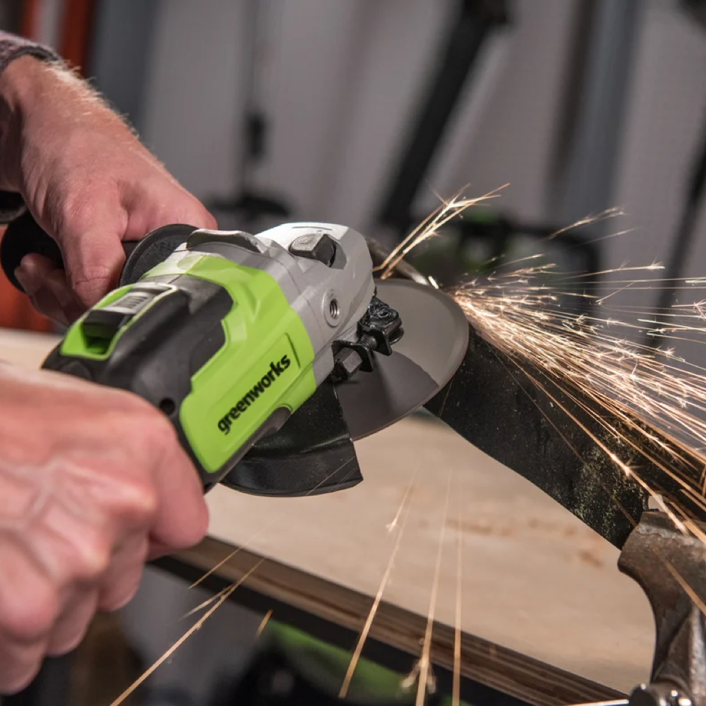 Комплект GD24AGK2 (Арт. 3200207UA): УШМ (болгарка), аккумулятор 24V 2 А*ч, зарядное устройство, удобная сумка-переноска. Угловая шлифовальная машина (болгарка) Greenworks 24V (модель GD24AG) - предназначена резки и шлифования металла. Мощный бесщеточный двигатель работает от аккумулятора 24В, что определяет высокую производительность и скорость реза. Максимальный размер режущего диска - 125 мм. Скорость вращения диска 10 500 оборотов в минуту. Рукоятка устройства прорезинена для улучшения контроля над машинкой и предотвращения выскальзывания инструмента из рук. Рукоятка очень удобно лежит в руке. В комплекте с устройством идет дополнительная боковая рукоять. УШМ оснащается ограничителем пускового тока для плавной регулировки пуска инструмента. Двигатель оснащен магнитным тормозом, который быстро останавливает режущий диск после выключения инструмента. Для быстрой замены оснастки УШМ оснащена блокировкой шпинделя. Важным преимуществом данной модели является малый вес - 1,5 кг. Для защиты двигателя от перегрева данная модель оснащена специальной вентиляцией и имеет систему охлаждение двигателя. В случае зажатия или блокировки режущего диска двигатель автоматически останавливается. Ударопрочный корпус устройства защищает его от повреждений, а металлический корпус редуктора еще больше увеличивает надежность инструмента. Посадочный диаметр - 22,2 мм. Блокировка двигателя при заклинивании диска. Серия Greenworks G-24V - включает в себя более 40 устройств. Приобретая данную модель в месте с аккумулятором, вы сможете использовать его аккумуляторную батарею с другими инструментами и садовой техникой 24В. Гарантия - 3 года. Состав комплекта: Угловая шлифовальная машина (Болгарка) Greenworks 24V, арт. 3200207, модель GD24AG; Боковая рукоятка; Ключ для монтажа диска; Аккумулятор 24В 2 А*ч; Зарядное устройство 2А; Руководство по эксплуатации; Гарантийный талон; Удобная сумка-переноска. Питание от аккумулятора 24V; Бесщеточный двигатель DigiPro; Максимальный размер режущего диска - 125 мм; Скорость вращения диска 10 500 оборотов в минуту; Рукоятка устройства прорезинена для улучшения контроля над машинкой и предотвращения выскальзывания инструмента из рук: Ограничитель пускового тока; Магнитный тормоз двигателя; Блокировка шпинделя; Малый вес - 1,5 кг. Ударопрочный корпус; Металлический корпус редуктора; Посадочный диаметр - 22,2 мм; Блокировка двигателя при заклинивании диска; Защиты двигателя от перегрева; Серия Greenworks G-24V - включает в себя более 30+ устройств. Приобретая данную модель в месте с аккумулятором, вы сможете использовать его аккумуляторную батарею с другими инструментами и садовой техникой 24В. Расширенная гарантия на инструмент 3 года. Гарантия на аккумулятор 2 года. Состав комплекта: Угловая шлифовальная машина (Болгарка) Greenworks 24V, арт. 3200207, модель GD24AG; Боковая рукоятка; Ключ для монтажа диска; Аккумулятор 24В 2 АЧ; Зарядное устройство 2А; Руководство по эксплуатации; Гарантийный талон; Удобная сумка-переноска.