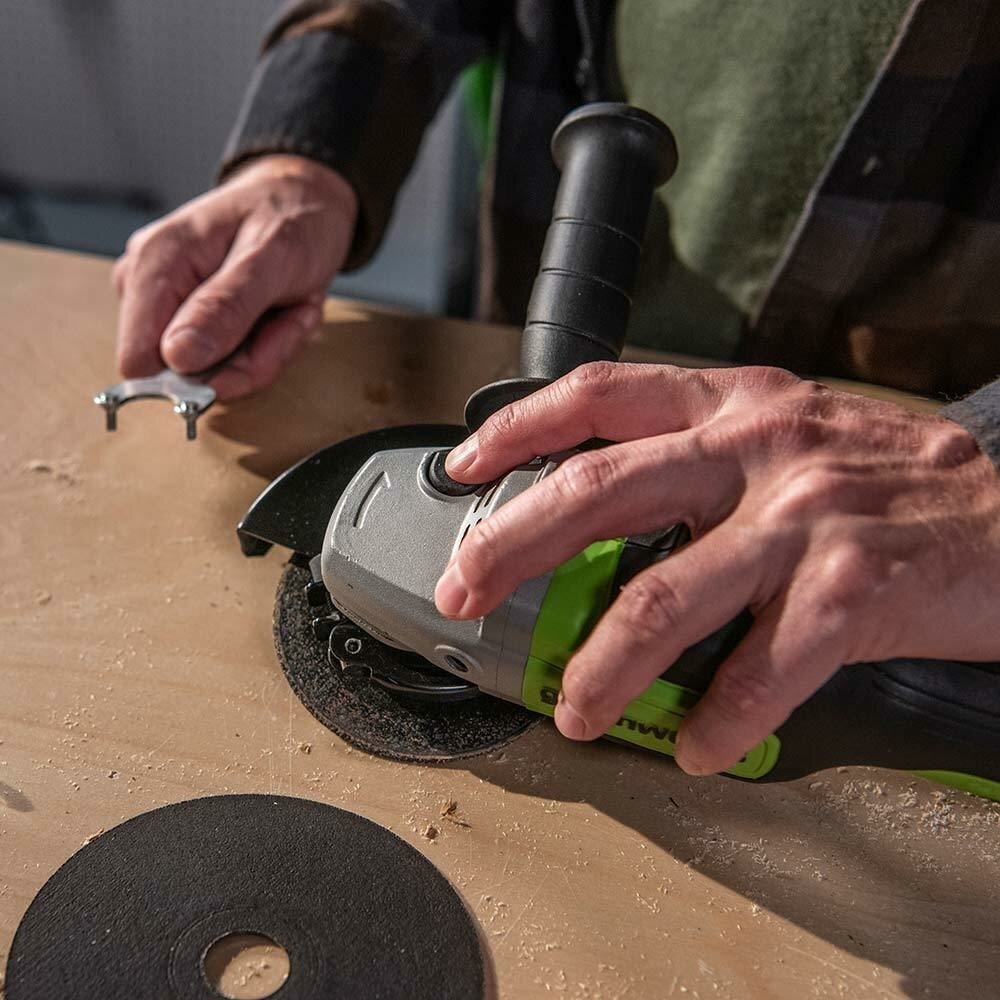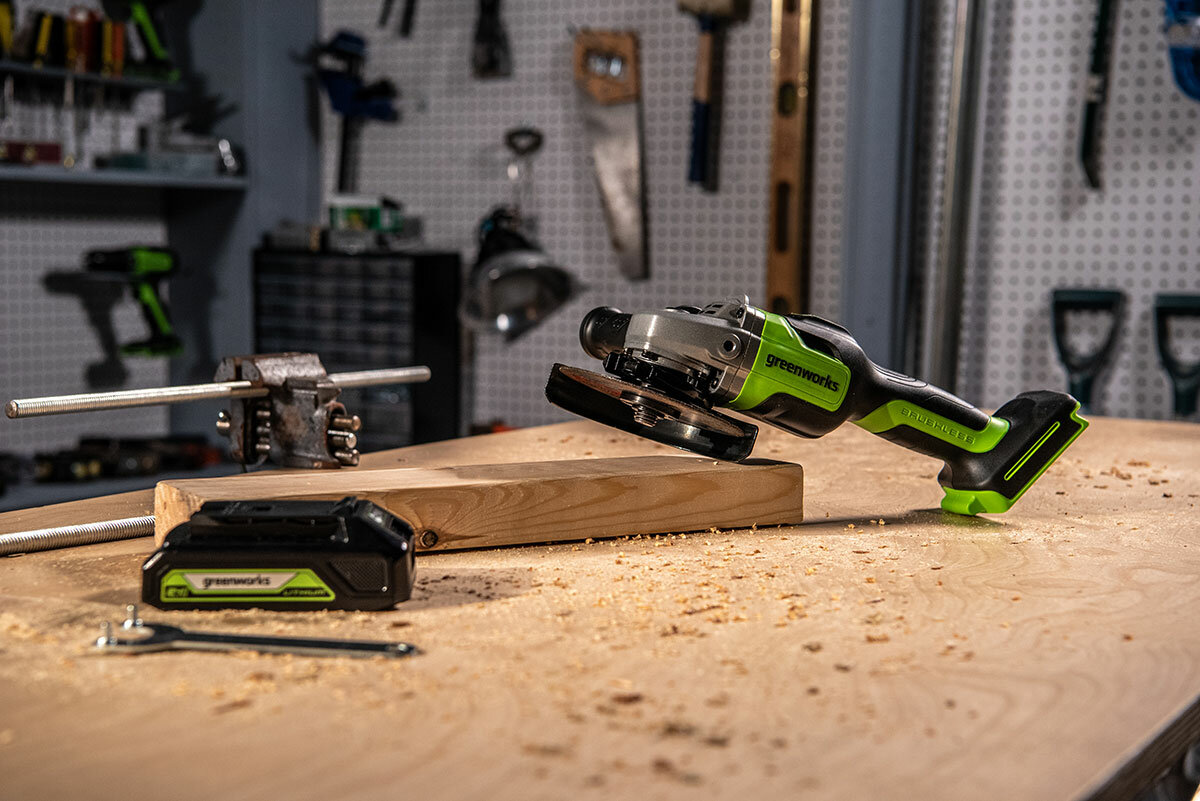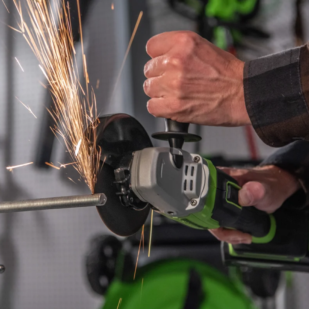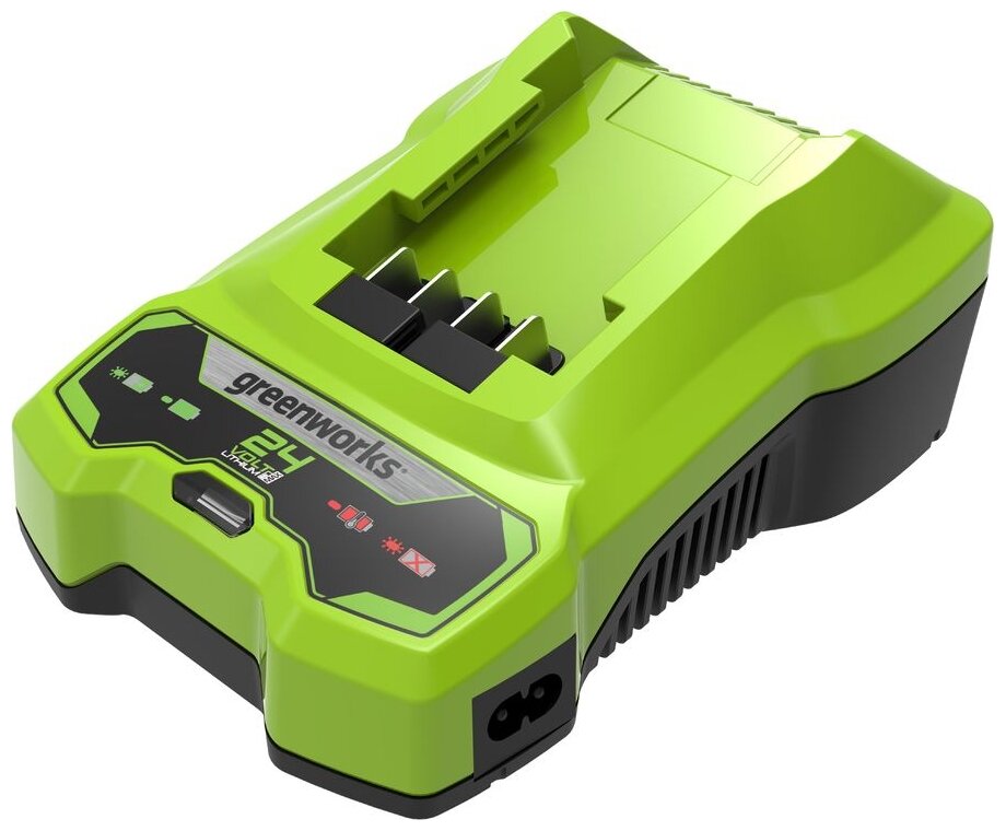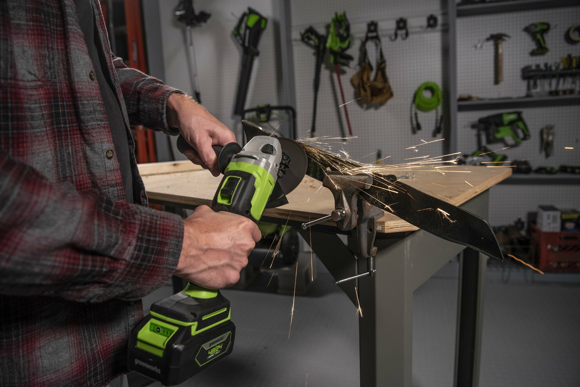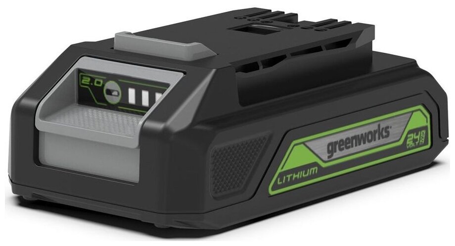 Комплект GD24AGK2 (Арт. 3200207UA): УШМ (болгарка), аккумулятор 24V 2 А*ч, зарядное устройство, удобная сумка-переноска. Угловая шлифовальная машина (болгарка) Greenworks 24V (модель GD24AG) - предназначена резки и шлифования металла. Мощный бесщеточный двигатель работает от аккумулятора 24В, что определяет высокую производительность и скорость реза. Максимальный размер режущего диска - 125 мм. Скорость вращения диска 10 500 оборотов в минуту. Рукоятка устройства прорезинена для улучшения контроля над машинкой и предотвращения выскальзывания инструмента из рук. Рукоятка очень удобно лежит в руке. В комплекте с устройством идет дополнительная боковая рукоять. УШМ оснащается ограничителем пускового тока для плавной регулировки пуска инструмента. Двигатель оснащен магнитным тормозом, который быстро останавливает режущий диск после выключения инструмента. Для быстрой замены оснастки УШМ оснащена блокировкой шпинделя. Важным преимуществом данной модели является малый вес - 1,5 кг. Для защиты двигателя от перегрева данная модель оснащена специальной вентиляцией и имеет систему охлаждение двигателя. В случае зажатия или блокировки режущего диска двигатель автоматически останавливается. Ударопрочный корпус устройства защищает его от повреждений, а металлический корпус редуктора еще больше увеличивает надежность инструмента. Посадочный диаметр - 22,2 мм. Блокировка двигателя при заклинивании диска. Серия Greenworks G-24V - включает в себя более 40 устройств. Приобретая данную модель в месте с аккумулятором, вы сможете использовать его аккумуляторную батарею с другими инструментами и садовой техникой 24В. Гарантия - 3 года. Состав комплекта: Угловая шлифовальная машина (Болгарка) Greenworks 24V, арт. 3200207, модель GD24AG; Боковая рукоятка; Ключ для монтажа диска; Аккумулятор 24В 2 А*ч; Зарядное устройство 2А; Руководство по эксплуатации; Гарантийный талон; Удобная сумка-переноска. Питание от аккумулятора 24V; Бесщеточный двигатель DigiPro; Максимальный размер режущего диска - 125 мм; Скорость вращения диска 10 500 оборотов в минуту; Рукоятка устройства прорезинена для улучшения контроля над машинкой и предотвращения выскальзывания инструмента из рук: Ограничитель пускового тока; Магнитный тормоз двигателя; Блокировка шпинделя; Малый вес - 1,5 кг. Ударопрочный корпус; Металлический корпус редуктора; Посадочный диаметр - 22,2 мм; Блокировка двигателя при заклинивании диска; Защиты двигателя от перегрева; Серия Greenworks G-24V - включает в себя более 30+ устройств. Приобретая данную модель в месте с аккумулятором, вы сможете использовать его аккумуляторную батарею с другими инструментами и садовой техникой 24В. Расширенная гарантия на инструмент 3 года. Гарантия на аккумулятор 2 года. Состав комплекта: Угловая шлифовальная машина (Болгарка) Greenworks 24V, арт. 3200207, модель GD24AG; Боковая рукоятка; Ключ для монтажа диска; Аккумулятор 24В 2 АЧ; Зарядное устройство 2А; Руководство по эксплуатации; Гарантийный талон; Удобная сумка-переноска.