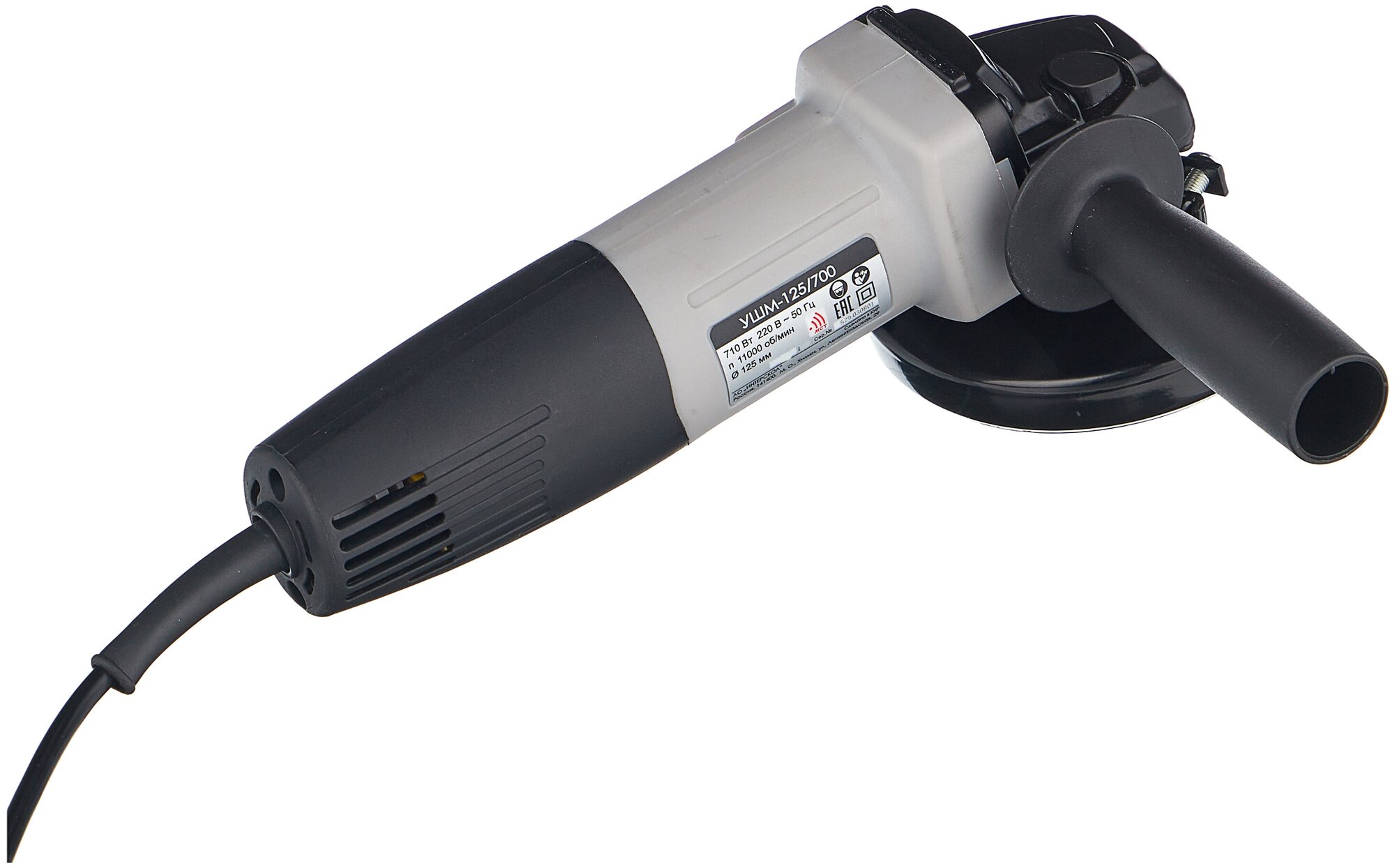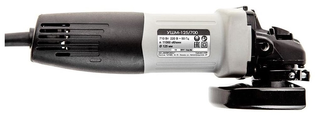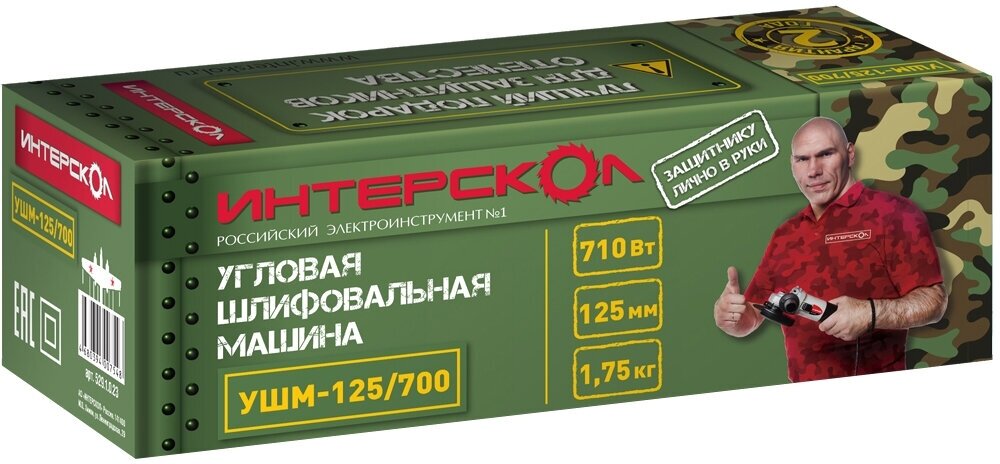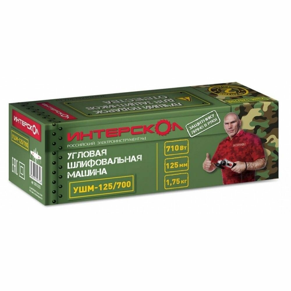 Профессиональная малая угловая шлифовальная машина(болгарка). Компактный универсальный инструмент, имеющий малые габариты и вес для шлифовки и резания разнообразных материалов с наиболее распространенным диаметром оснастки 125 мм. Уменьшенный диаметр моторного блока обеспечивает удобный хват рукой. Прекрасно подходит для производства длительных работ, особенно в стесненных условиях. Преимущества: — удобный хват рукой за счет уменьшенного диаметра моторного блока 58мм; — компактный размер редуктора - инструментом всегда можно добраться в самое сложное место; — малый вес - даже длительная работа с этим инструментом не будет утомительной; — мощный высокопроизводительный двигатель для работы в продолжительном режиме; — фиксатор шпинделя (для удобной замены оснастки); — шпиндель на двух подшипниках качения; — два варианта установки дополнительной рукоятки сделают удобной практически любую работу. Спецификация: Параметры сети питания, В/Гц: 220 ±10% / 50 Номинальная потребляемая мощность, Вт: 710 Максимальный Ø диска, мм: 125 Диаметр посадочного отверстия шлифкруга, мм: 22,3 Ø резьбы шпинделя, мм: М14 Частота вращения шлифовального круга на холостом ходу, об/мин: 11000 Плавный пуск: нет Ограничение пускового тока: нет Фиксация выключателя: есть Регулировка оборотов: нет Поворотная основная рукоятка: нет Защита от повторного включения: нет Поддержание оборотов: нет Защита от перегрева: нет Защита от перегрузки: нет Защита от заклинивания: нет Защита по току: нет Класс безопасности машины по ГОСТ12.2.013.0-91: II Комплектация: Машина шлифовальная угловая 1 шт. Руководство по эксплуатции и Инструкция по безопасности 1 шт. Гарантийный талон 1 шт. Список сервисных мастерских 1 шт. Кожух защитный (для шлифовальных работ) 1 шт. Дополнительная рукоятка 1 шт. Ключ специальный 1 шт. Гайка крепления шлифкруга 1 шт. Фланец опорный шлифкруга 1 шт. Упаковка 1 шт.