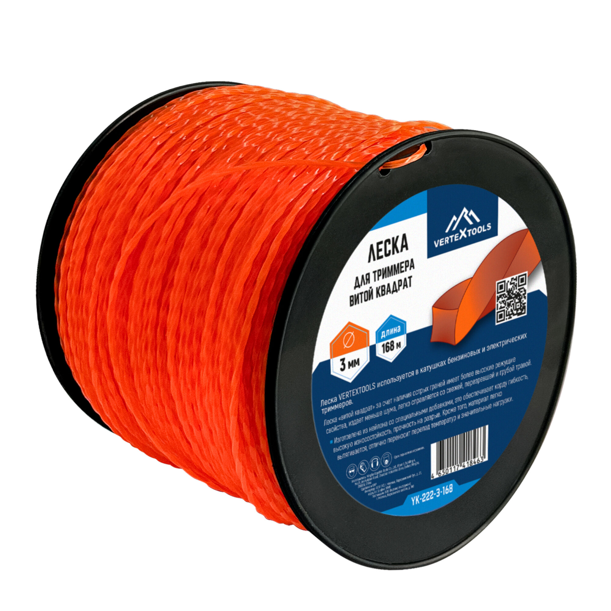 Леска 3 мм, бобина 168 м, витой квадрат для триммера используется в катушках бензиновых и электрических триммеров.