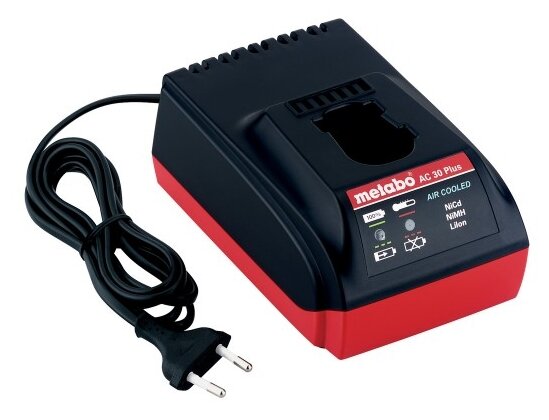 Зарядное устройство AC 30 Plus Metabo 627275000 применяется для зарядки аккумуляторов NiCd/NiMH от 4.8 до 18 В, а также новых Li-Ion блоков от 12 до 18 В. Устройство самостоятельно производит диагностику аккумулятора. Микропроцессор контролирует процесс зарядки, а именно температуру, при которой происходит процесс зарядки, напряжение, а также останавливает процесс по достижении полного заряда и производит поддержание заряда путем включения устройства каждые 45 сек на 1 секунду при токе зарядки 2.5 А. Среднее время зарядки 30 минут при 1.4 Ач.