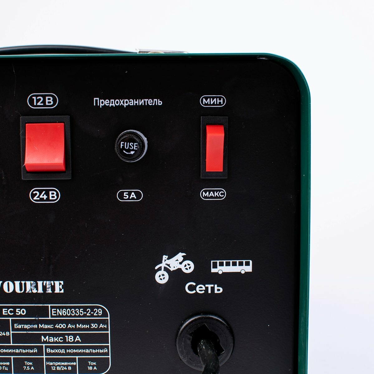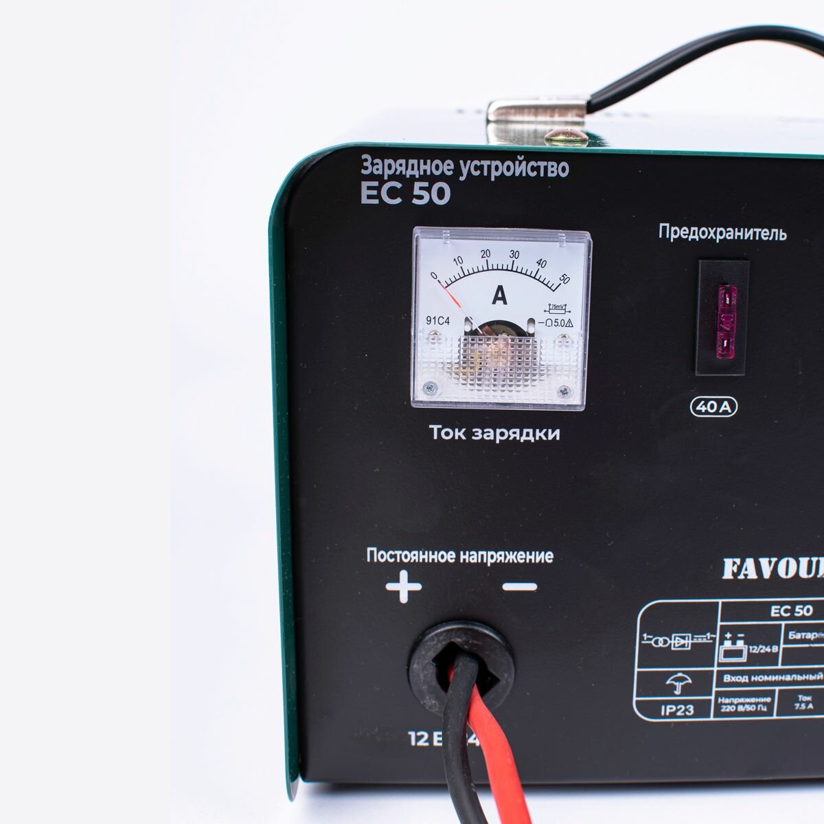 Зарядное устройство автомобильное Favourite EC 50 - надежный и эффективный помощник для поддержания заряда аккумуляторов вашего автомобиля. Специально разработанное для автомобильных аккумуляторов, это зарядное устройство обеспечивает надежное и быстрое зарядное решение для вашего автомобиля. С его помощью вы сможете легко и удобно поддерживать заряд вашего автомобильного аккумулятора, что позволит вам избежать неприятных ситуаций, связанных с разрядкой аккумулятора в самый неподходящий момент. Это зарядное устройство является идеальным выбором для любого автомобиля. Особенности: Металлический корпус обеспечивает защиту от повреждений и продлевает срок использования зарядного устройстваВстроенная термозащита предохраняет устройство от перегрева. Характеристики Тип устройства - пуско-зарядное устройствоДля аккумуляторов напряжением - 12/24 ВНапряжение питания - 220 ВMax ток заряда - 120 АMin емкость аккумулятора - 30 А*чMax потребляемая мощность зарядки - 180 ВтРежим Boost - нетЦифровой дисплей - нетMax емкость аккумулятора - 400 А*чВес нетто - 7 кг