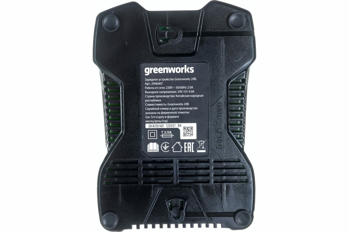 Зарядное устройство Greenworks G24C — предназначено для зарядки аккумуляторных батарей Greenworks G-24V с напряжением 24V. Подходит для аккумуляторов на 2 А/ч и 4 А/ч.